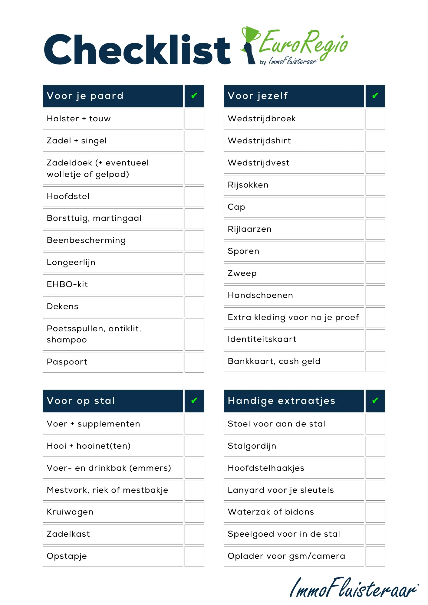 Nemen je paard en jij deel aan een EuroRegio? Dan hebben wij voor jou de ultieme checklist met spullen die je zeker niet mag vergeten op meerdaagse wedstrijd!