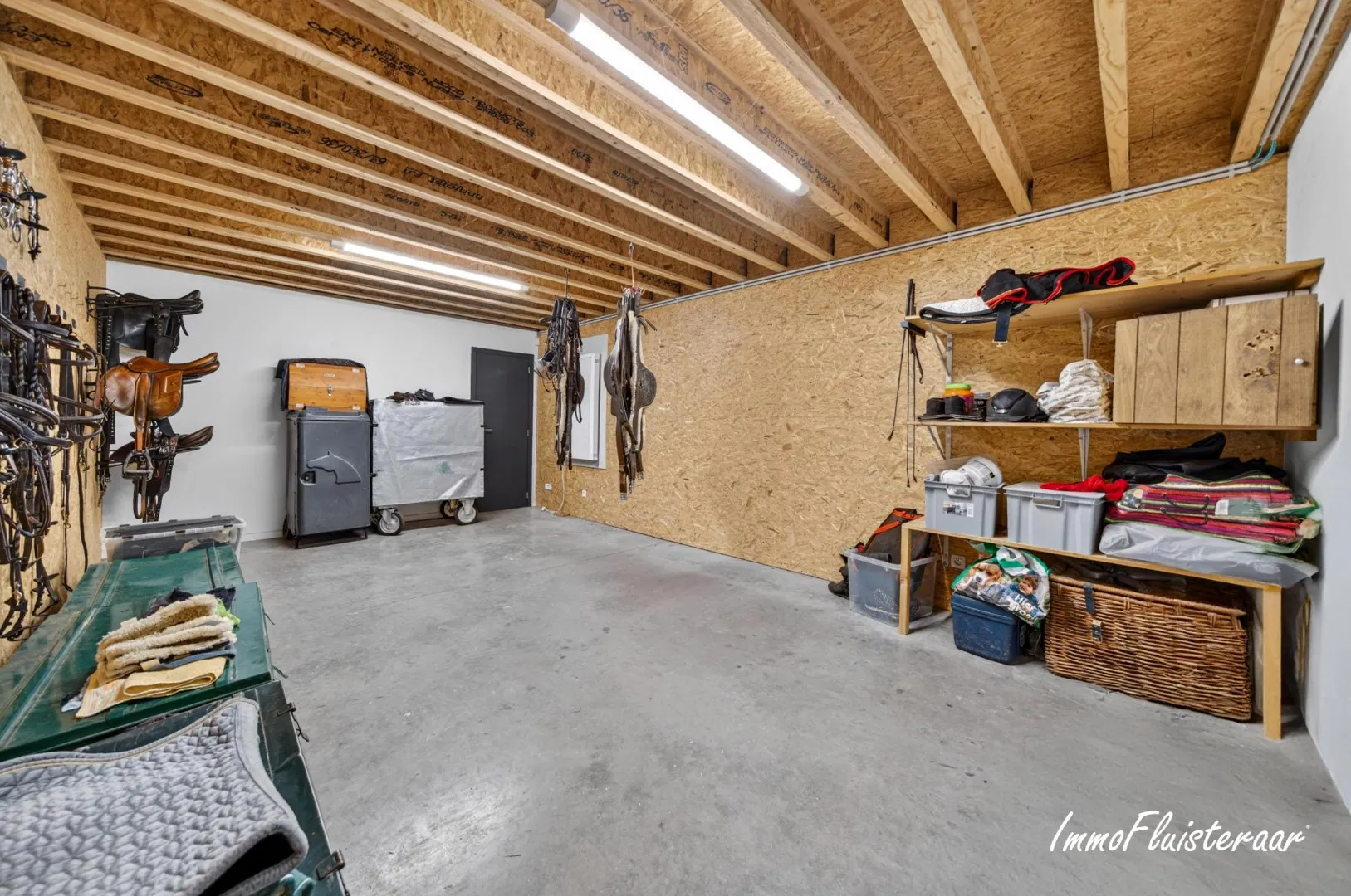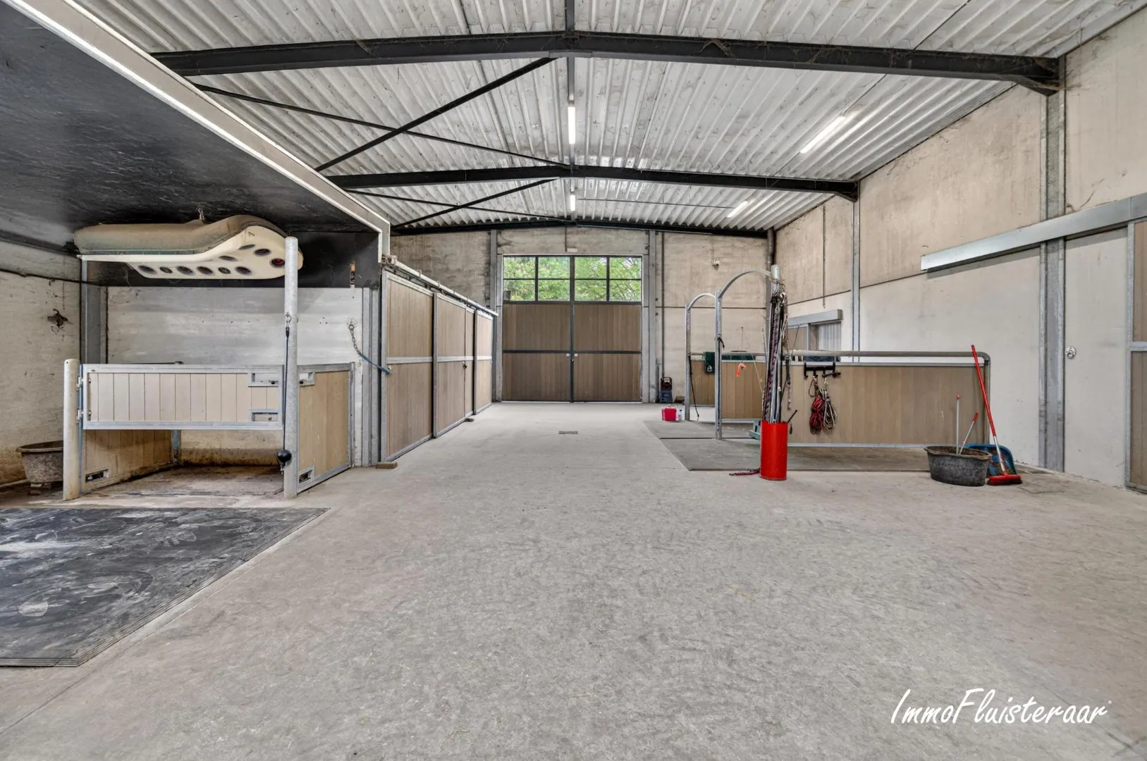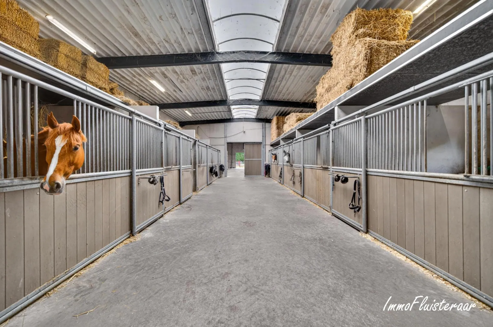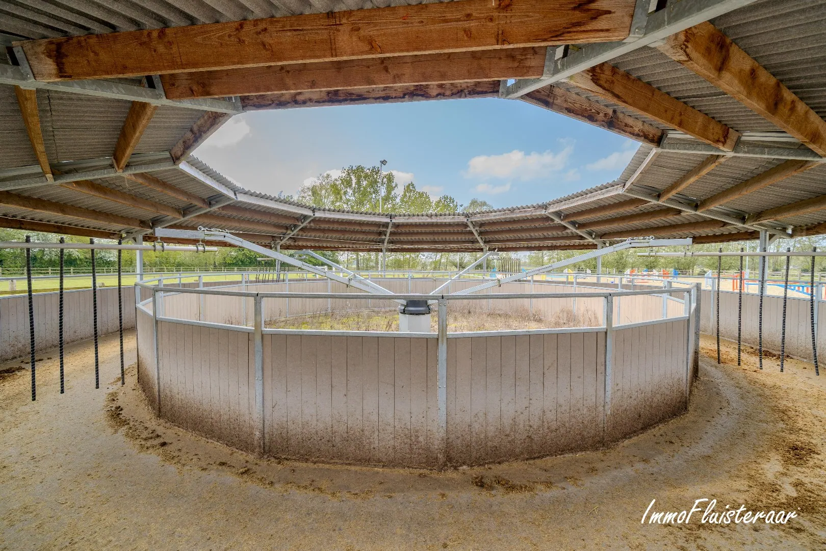 De hippische infrastructuur is op professioneel niveau uitgebouwd en omvat o.a. een binnenpiste (20x40m) met clubhuis, 16 boxen verdeeld over twee stalgebouwen, inloopstallen, diverse verzorgingsruimtes, opslagmogelijkheden en huisvesting voor personeel. Daarnaast beschikt het domein over een buitenpiste (33x55m), een stapmolen voor 4 paarden en een galoppiste rondom het terrein.