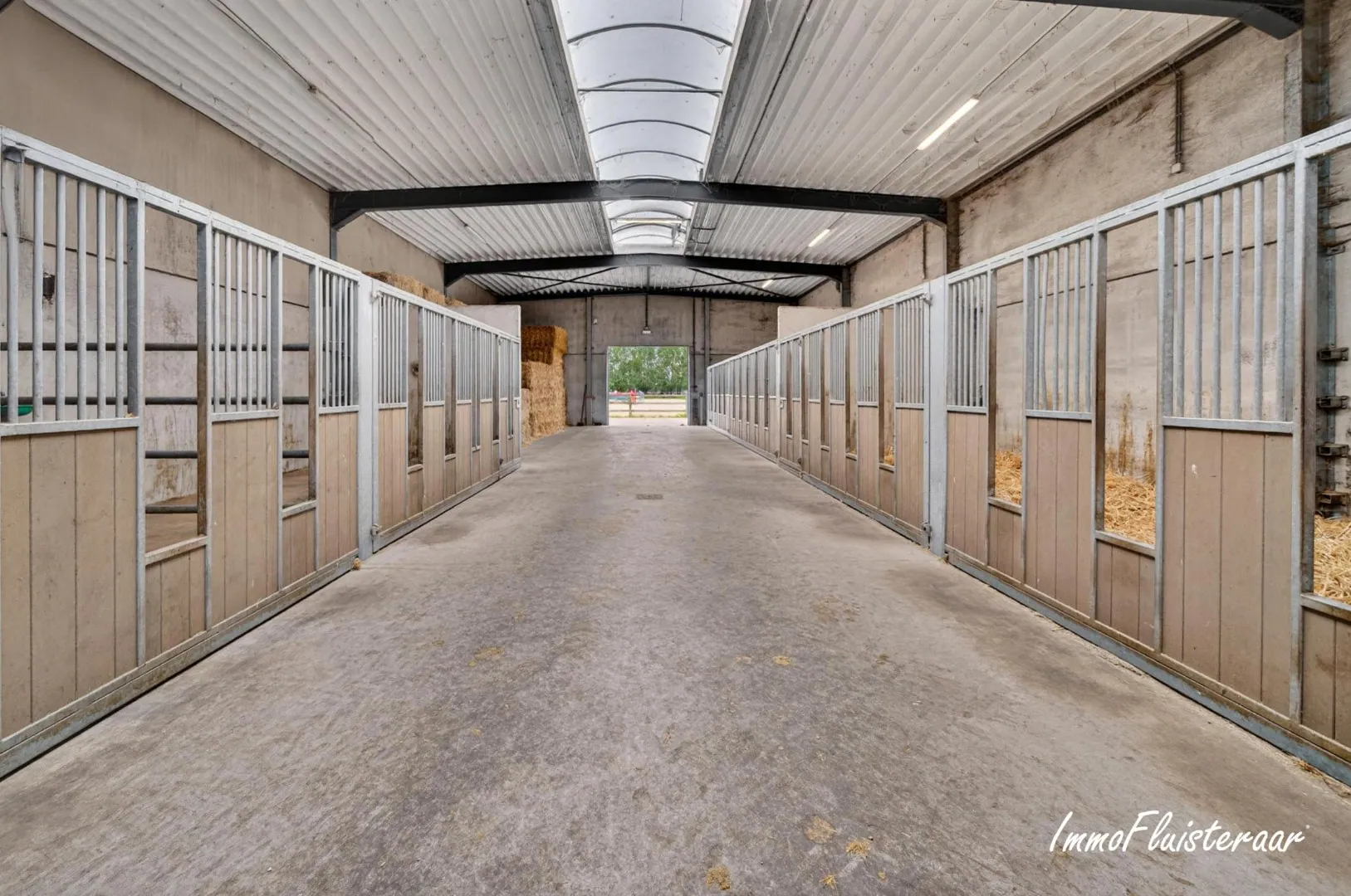 Het perceel is volledig omheind, opgedeeld in meerdere weides en toegankelijk via een private oprijlaan. Er is ruime parkeergelegenheid voorzien voor zowel wagens als vrachtwagens.
