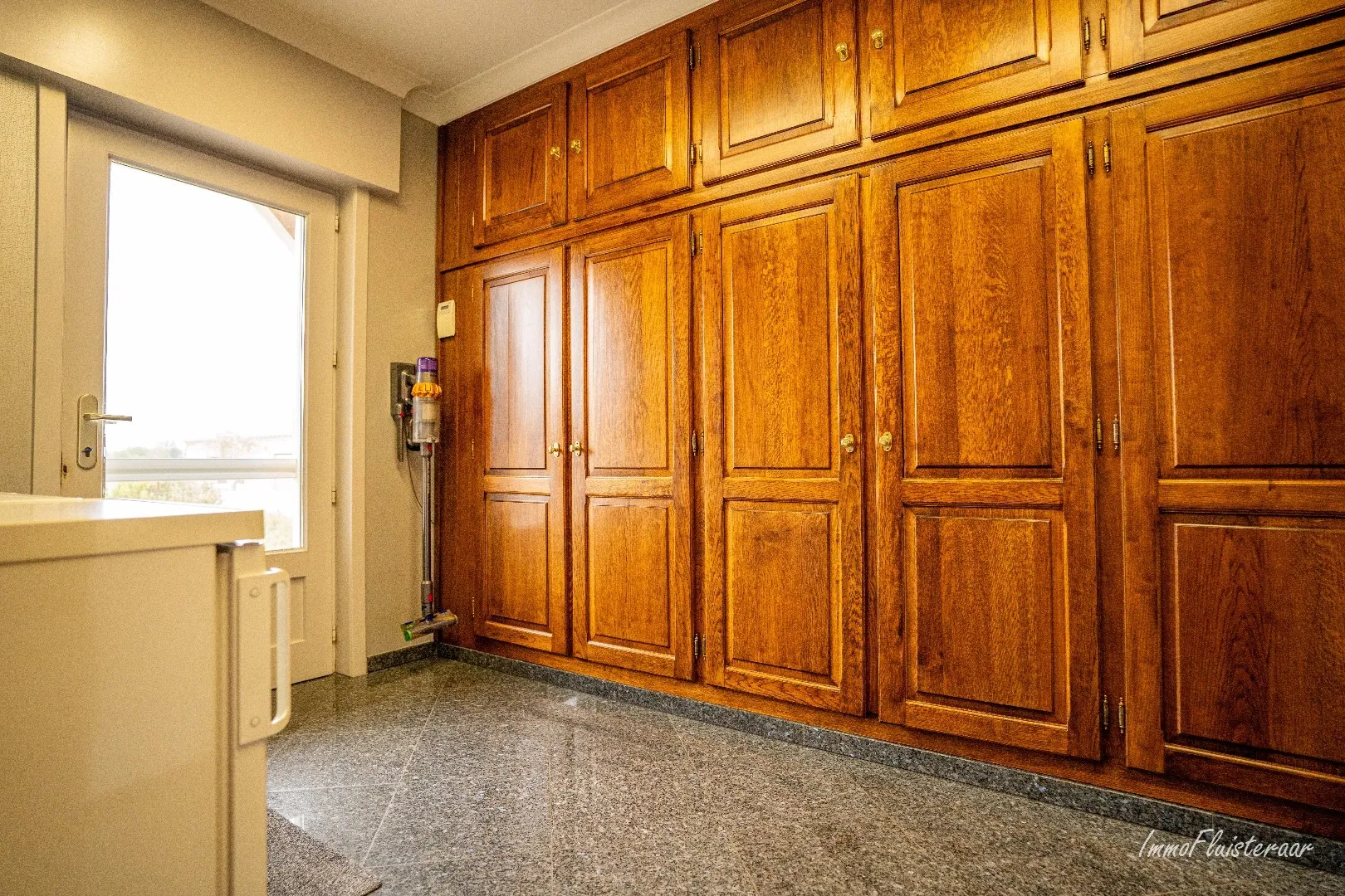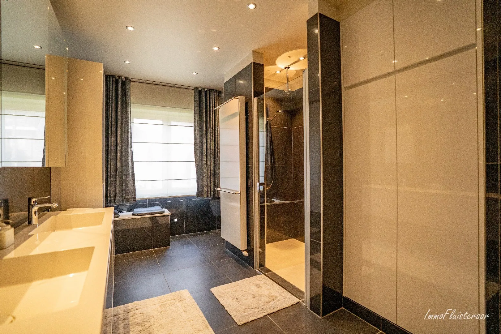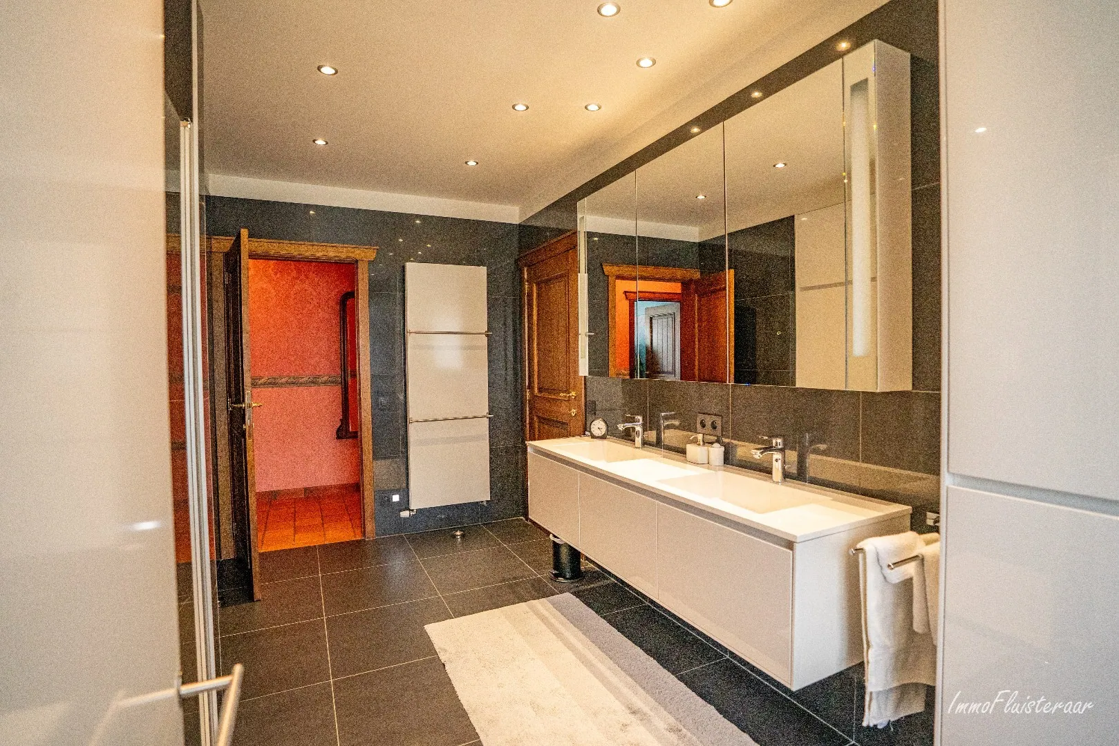 De woning werd de afgelopen jaren grondig gemoderniseerd en beschikt over een EPC-label B, waardoor het gaat om een energiezuinige woning. Ze wordt verwarmd met vloerverwarming, is voorzien van ramen met drievoudige beglazing en beschikt over airco's in meerdere ruimtes. Binnenin vinden we een volledig uitgeruste open keuken, een lichtrijke leefruimte, een bureauruimte met aparte ingang, 4 slaapkamers, een badkamer met inloopdouche, toilet en dubbele wastafel. De bovenverdieping is afgewerkt als deels studio en deels zolderruimte. De tuin beschikt over een zwembad met zonneboiler en warmtepomp.