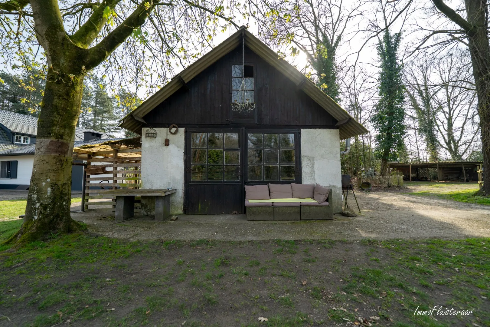 Naast de woning bevindt zich een volledig ingerichte chalet, ideaal als kangoeroewoning, inwonende familie of pubers die graag hun eigen stekje willen. De chalet beschikt over een achterinkom met aansluiting voor een wasmachine, een badkamer met bad, toilet en wastafel, een bureauruimte, één slaapkamer en een gezellige leefruimte met open keuken en houtkachel. Ook hier gebeurt de verwarming via pellets. De chalet is voorzien van dubbel glas (recent vernieuwd) en heeft een eigen terras.