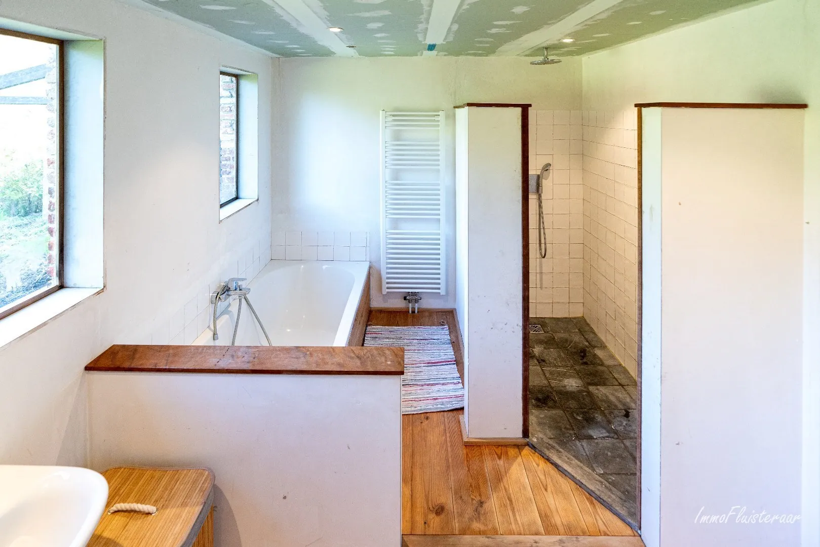 De hoeve bestaat uit een leefruimte met veel lichtinval, een ruime slaapkamer, een keuken met berging, een wasplaats, een kelder en een recent deels gerenoveerde badkamer. Op de zolder zijn er mogelijkheden om nog kamers bij te maken. Verder biedt de woning heel wat opslagruimte dankzij de grote schuur en het oude stalgebouw.