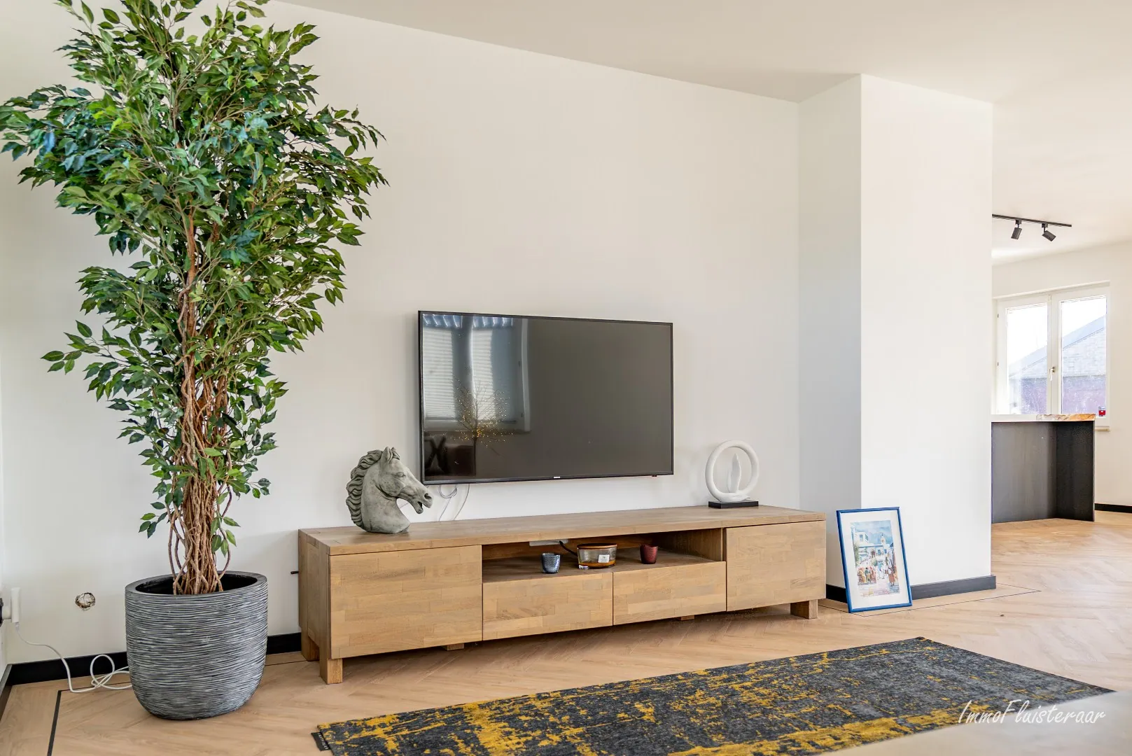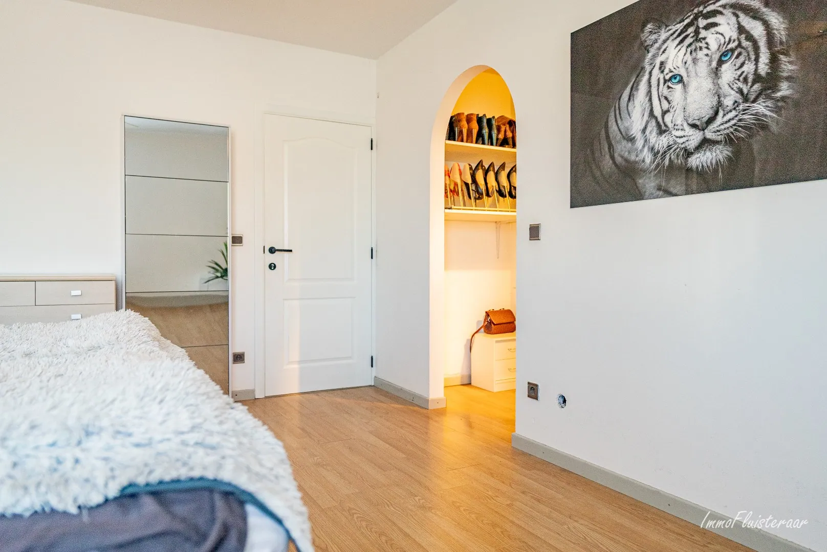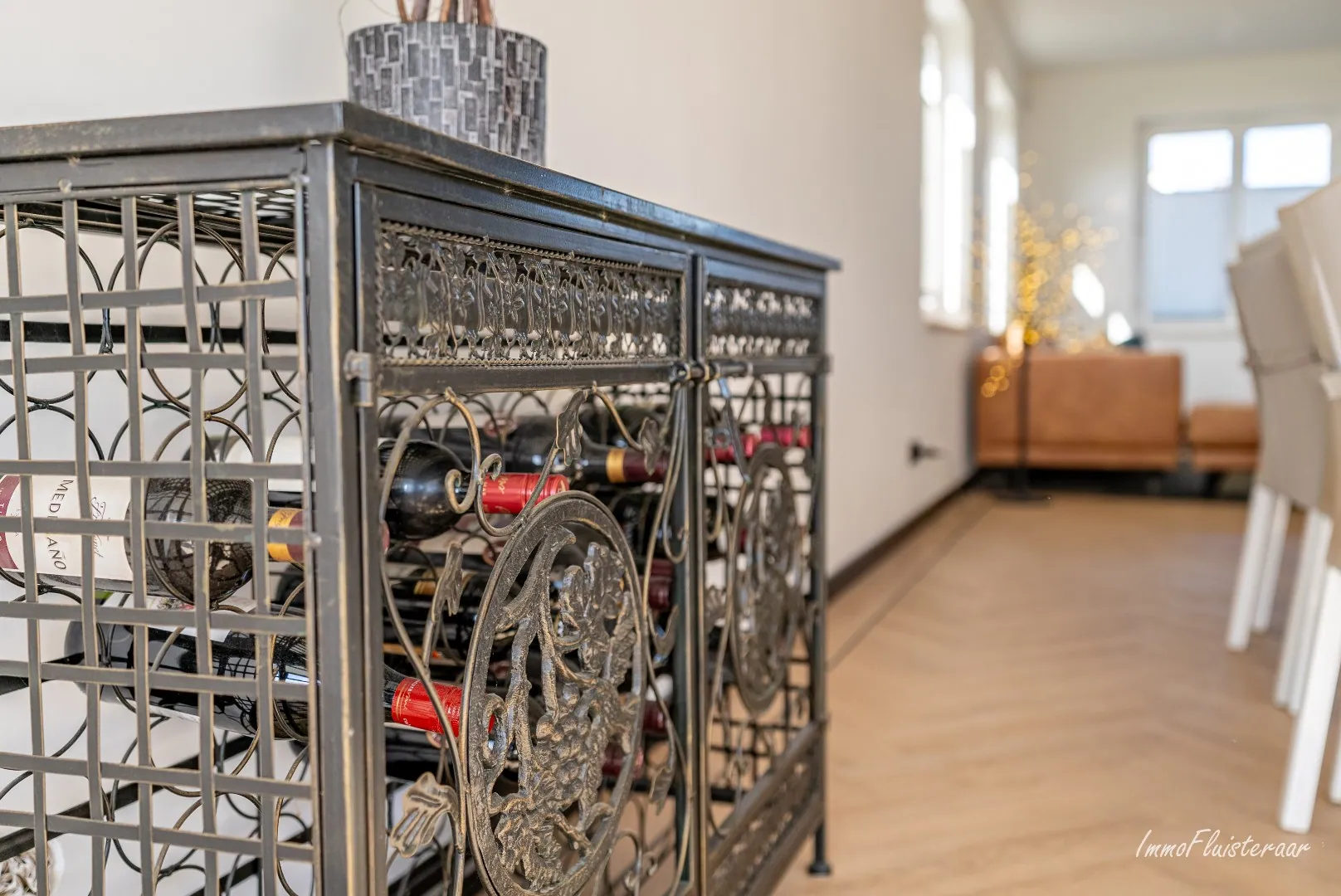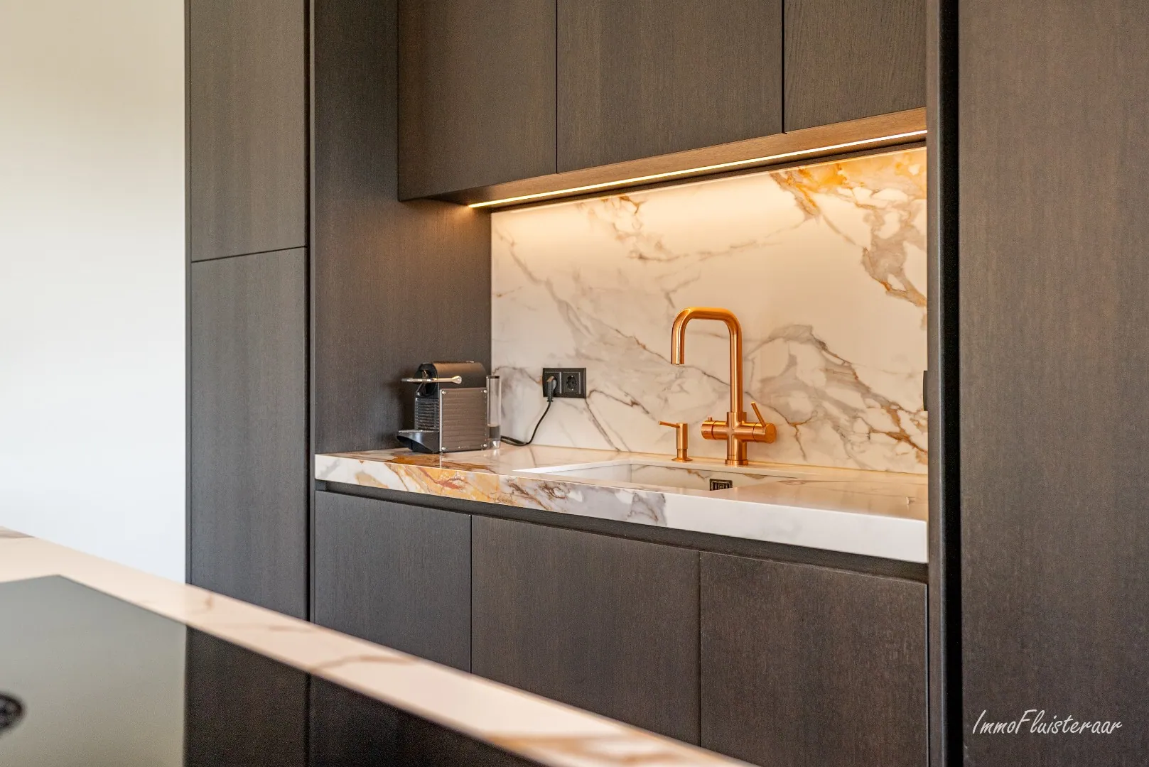 De woning beschikt over een moderne en lichtrijke leefruimte met open keuken, vanwaar u een prachtig uitzicht heeft op de achterliggende stallen en weide – een unieke connectie met het buitenleven. Verder is er een bureau aanwezig, ideaal voor thuiswerk of hobbyruimte, en één slaapkamer op de gelijkvloerse verdieping met aansluitende dressingruimte. Op de gelijkvloerse verdieping bevindt zich tevens een badkamer die aansluit aan de slaapkamer, uitgerust met bad, douche, dubbele lavabo en toilet, wat zorgt voor optimaal comfort.