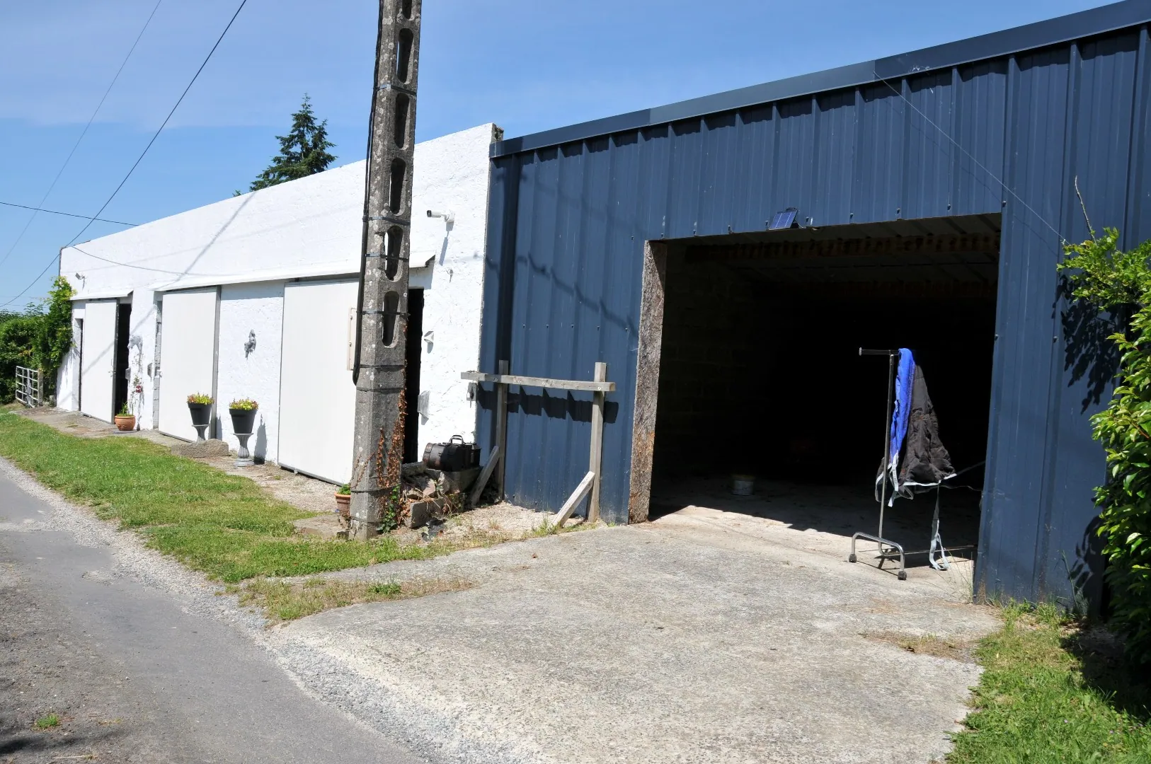 Twee identieke boxen van elk 32 m², die met elkaar in verbinding staan (mogelijkheid om ze in vier boxen te verdelen)