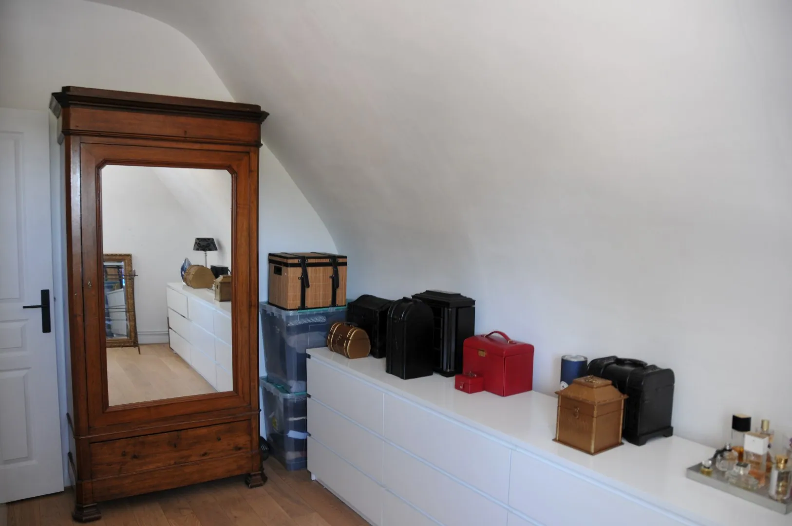 Op de tweede verdieping is een grote zolderkamer van ongeveer 50 m² ingericht onder het originele dakgebinte. Deze kamer beschikt over een aparte opslagruimte, mechanische ventilatie (voor het toilet, de keuken en de badkamer) en een moderne, energiezuinige elektrische boiler. Het is ook mogelijk om hier een tweede badkamer in te richten.