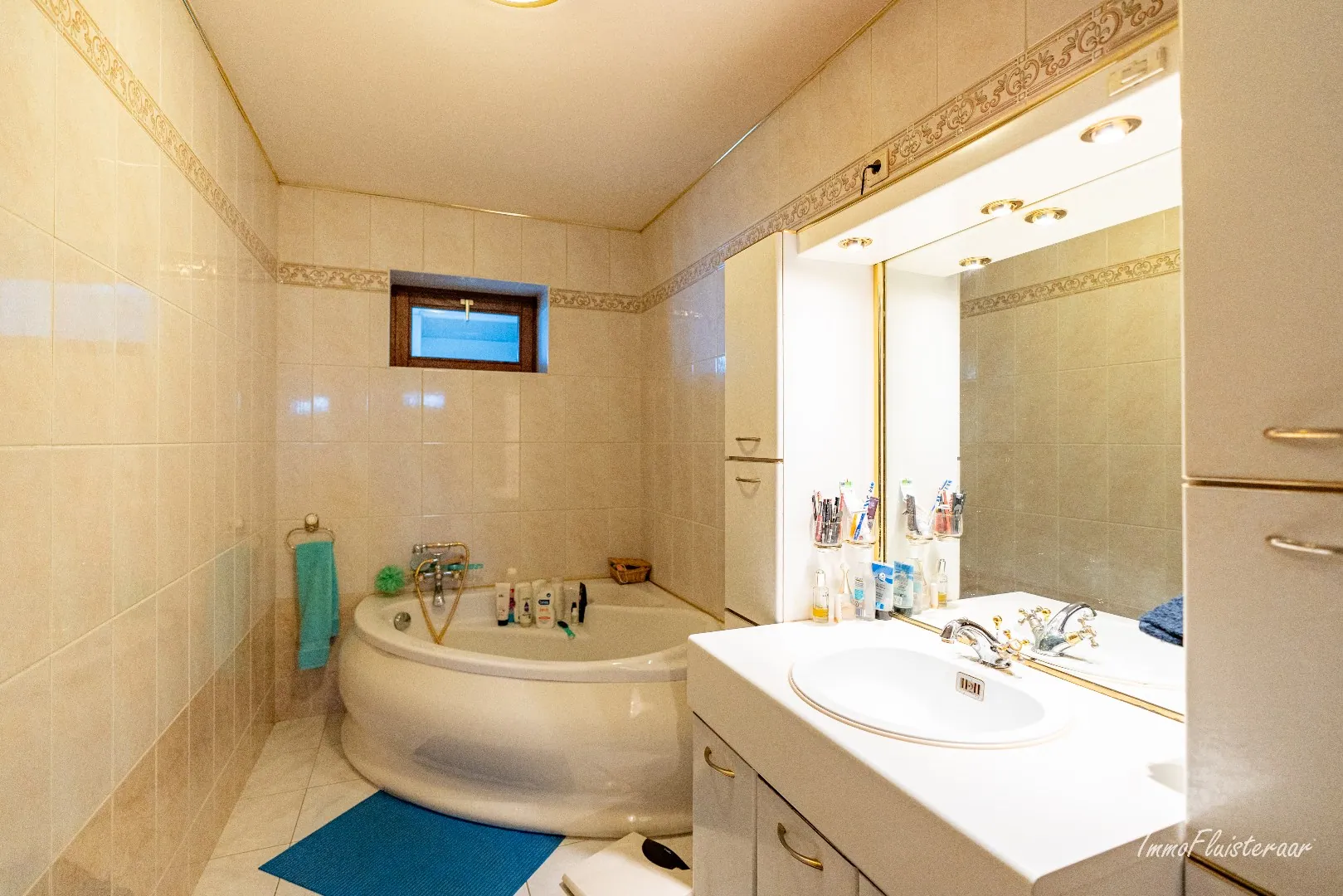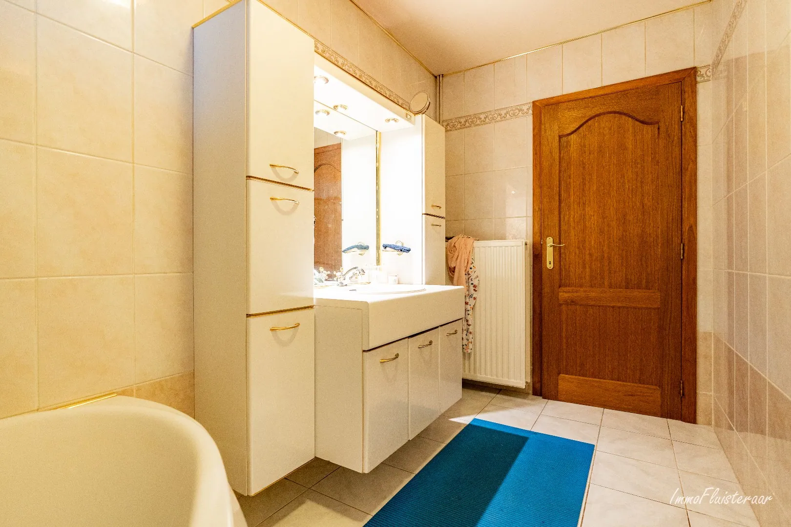 - Een badkamer met bad en lavabo