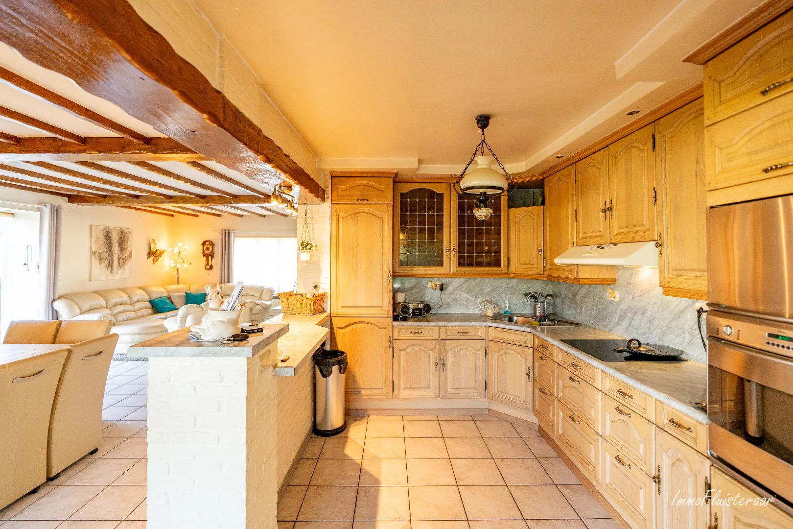 - Een open keuken met eetplaats