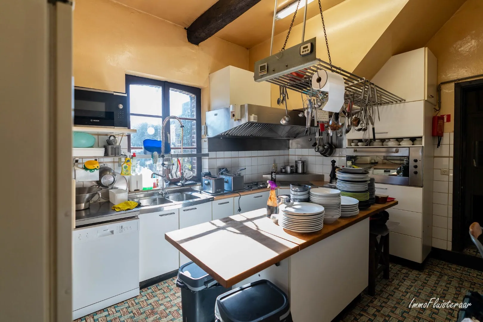 De eigendom omvat een woning met op het gelijkvloers een restaurant (ca. 255m²). De 1e verdieping telt ca. 225m² en ook is er nog een zolderverdieping van ca. 100m². Verder is er een bijgebouw met stallen (ca. 210m²), een schuur met stallen (ca. 310m²) en een binnenpiste met stallen (ca. 1080m²).