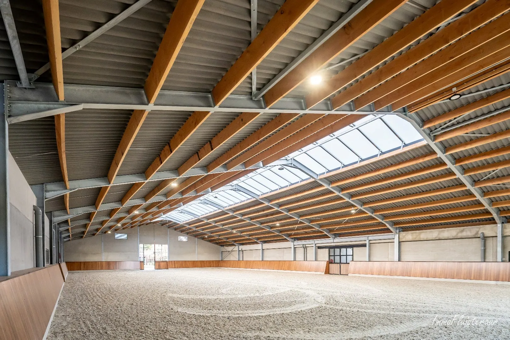 Het eigendom beschikt over een totaal van ca. 2 hectare aan weides, stallen, binnen- en buitenpiste, waardoor het ideaal is om paarden aan huis te houden. De stapmolen, stroloods, binnenpiste en een gedeelte van de stallen zijn volledig NIEUW!