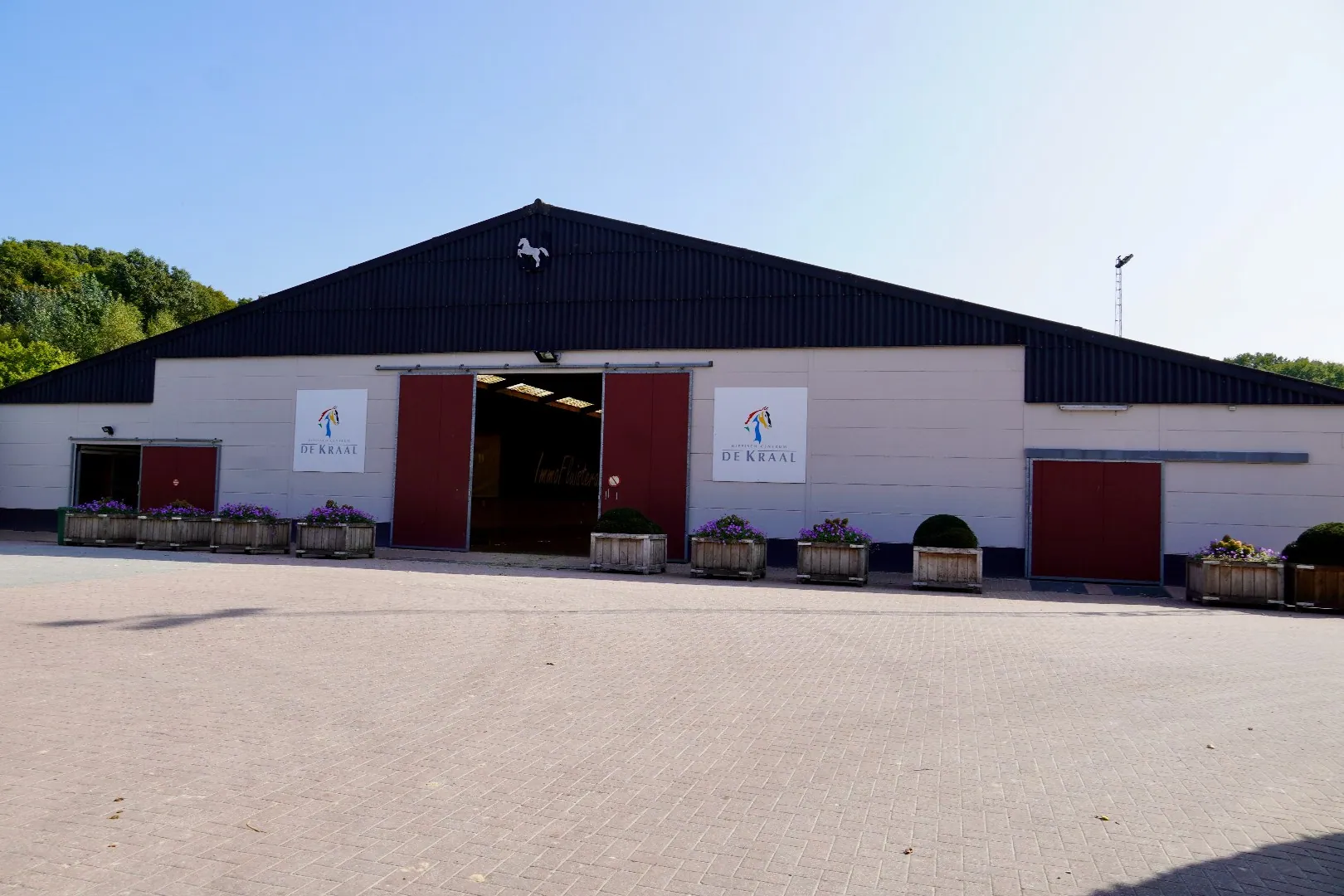 Deze zeer verzorgde paardenaccommodatie beschikt over 2 overdekte rijhallen (20m x 60m en 25m x 45m) en 2 buitenpistes (55m x 105m en 35m x 65m) met geopad bodem, 73 ruime stallen, 4 zadelkamers, 4 luxueuze wasplaatsen en solarium. Verder is er een overdekte longeerpiste (diameter ca. 17m), een overdekte stapmolen voor 6 paarden, een zandpaddock, een galoppiste eveneens voorzien van een geopad bodem en verschillende met hout omheinde weides.