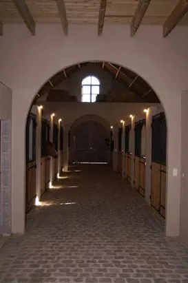 Het hippische gebouw bestaat uit 37 stallen en een impressionante binnenpiste.