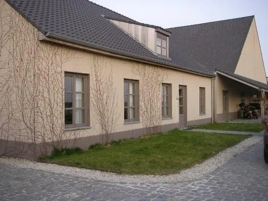 De woning is gelegen links van het hippisch complex , aan de voorzijde van het geheel.
