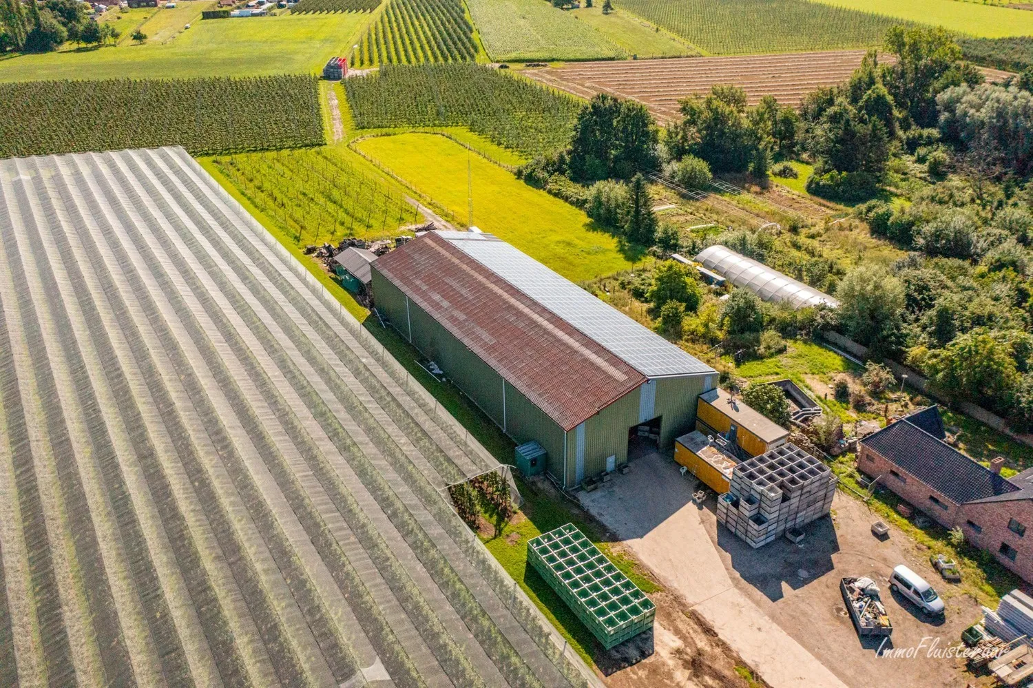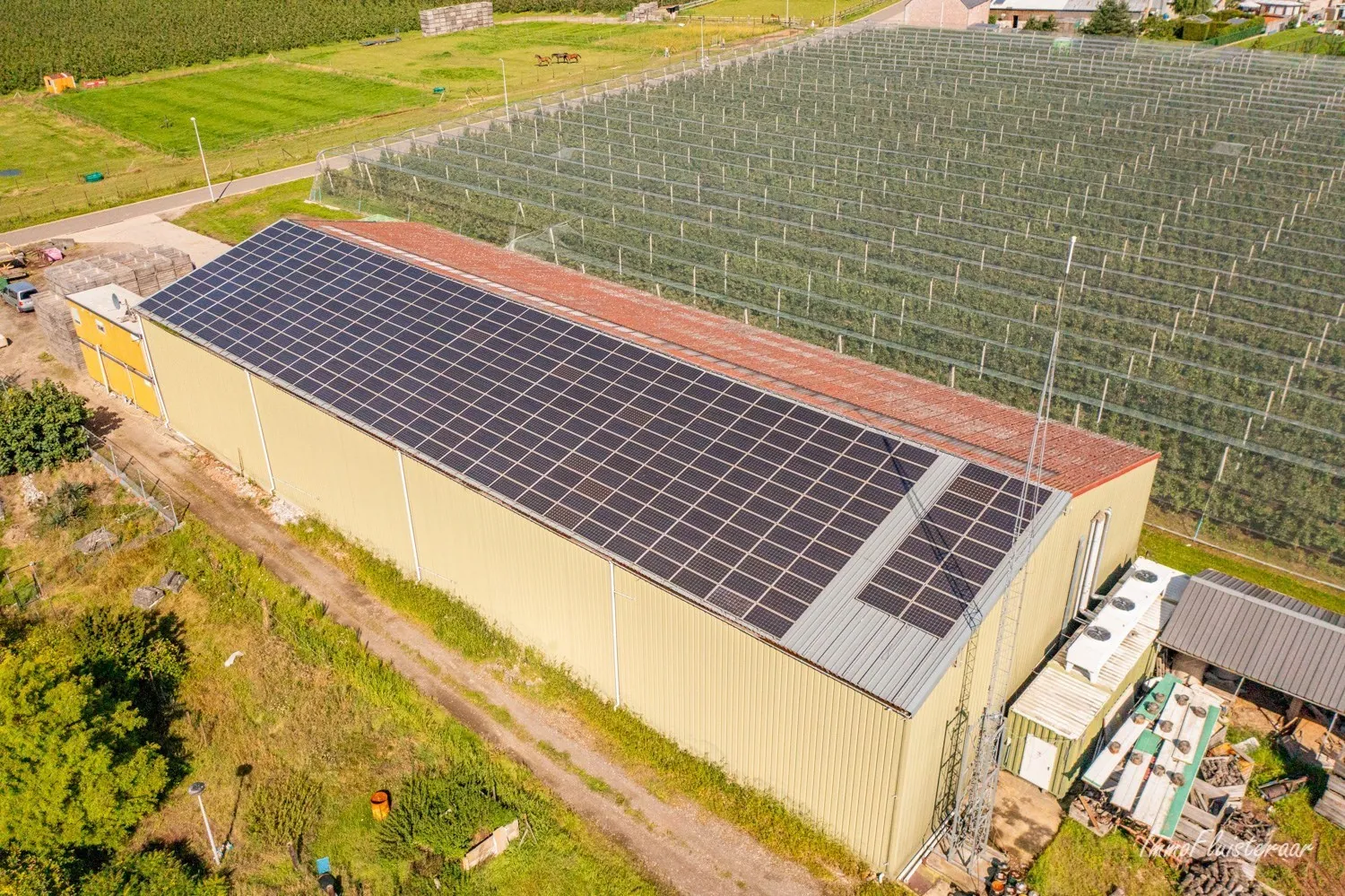 In the middle of the green surroundings of Herk-de-Stad, you can find a plot of land with a warehouse of approximately 54 acres. This is a plot of land on a plot of approximately 6 acres.