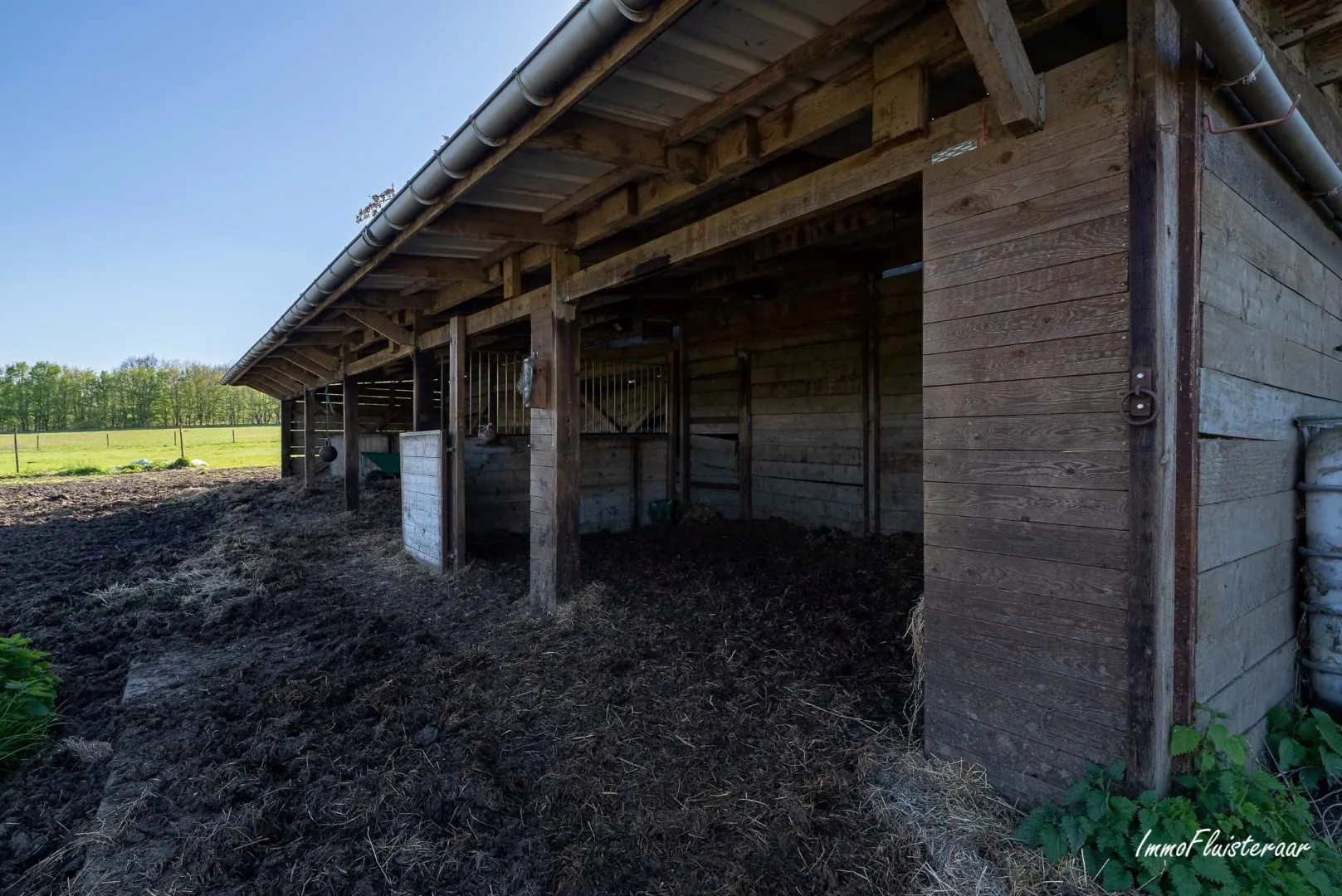 In addition to the spacious villa, there is an outbuilding with various purposes. On one hand, the outbuilding offers plenty of storage space with a carport of approximately 6m x 5.4m and a bicycle storage of approximately 6m x 2.8m. The passage between these two spaces provides access to an additional storage room. Furthermore, there is also a large covered storage area. On the other hand, the outbuilding accommodates horses, with 2 indoor stables and a feeding area. There are also sanitary facilities, such as a toilet and a shower. Finally, the outbuilding includes a large (hay) loft and storage space on the first floor.