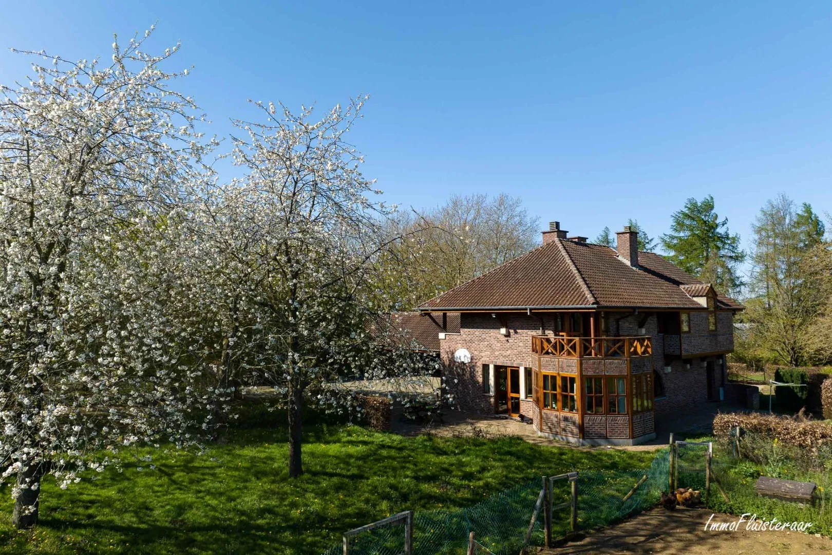 The square farm was built in 1991 and consists of a spacious villa of approximately 300m². The ground floor of this villa includes a spacious entrance hall, a separate toilet, a study, a storage room, and a fully equipped and closed kitchen (including a dishwasher and induction hob). Additionally, there is a dining area, a sitting area, a spacious living room with beautiful views of the meadows, a technical room, and a laundry room. The staircase in the entrance hall leads to the first floor, which comprises 4 spacious bedrooms and 2 bathrooms. The master bedroom opens onto two spacious terraces, offering expansive views of the surroundings. There is also a storage room on this floor. Finally, the farmhouse includes an attic and a crawl space.