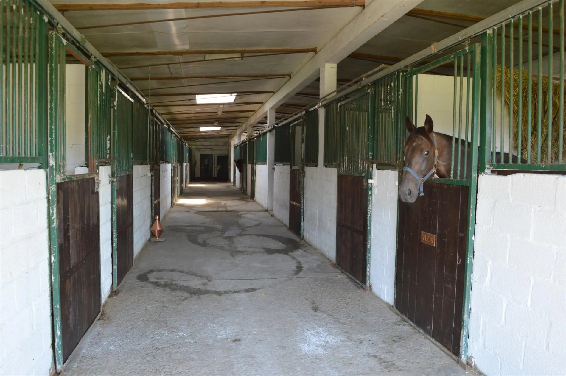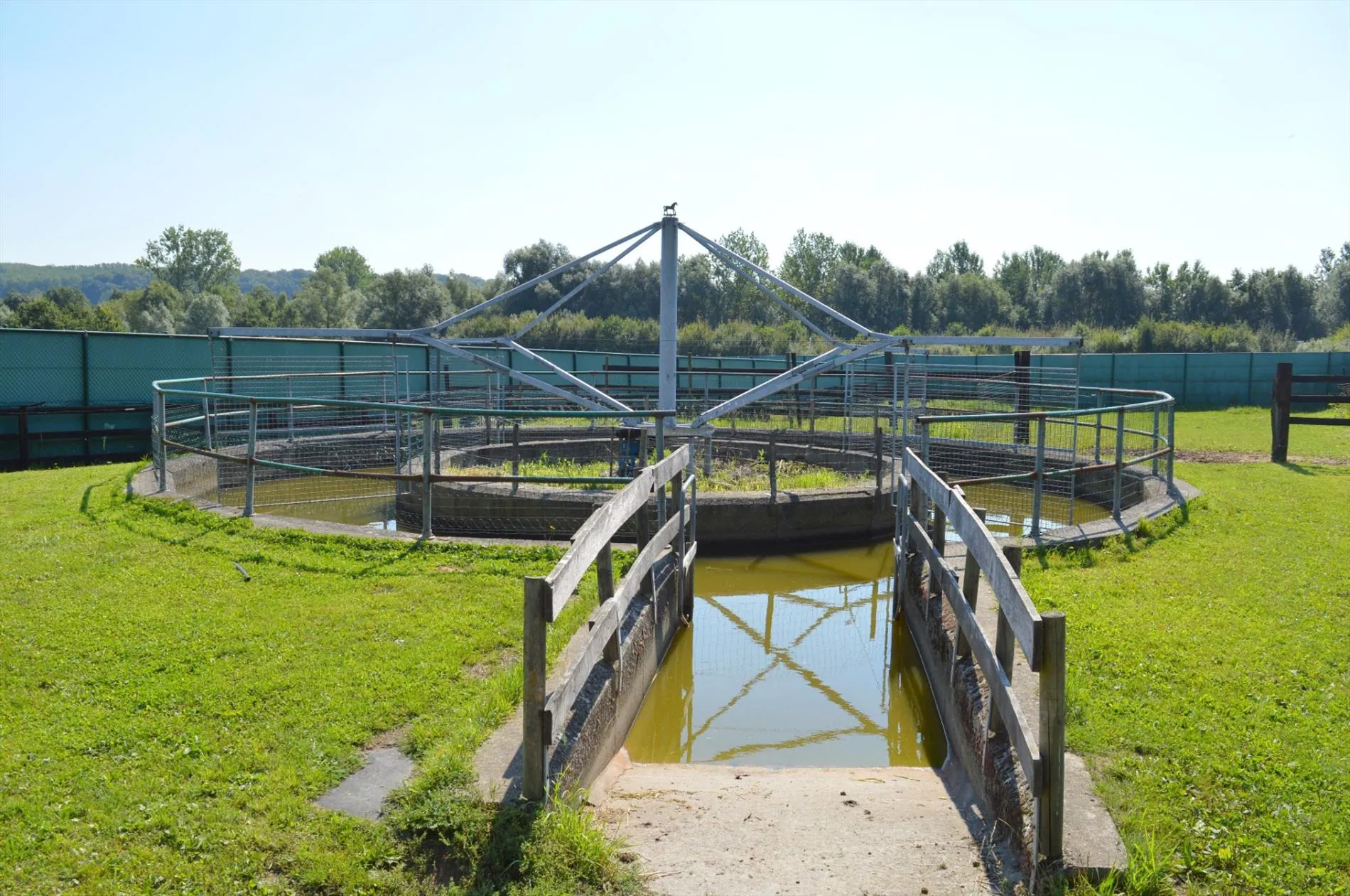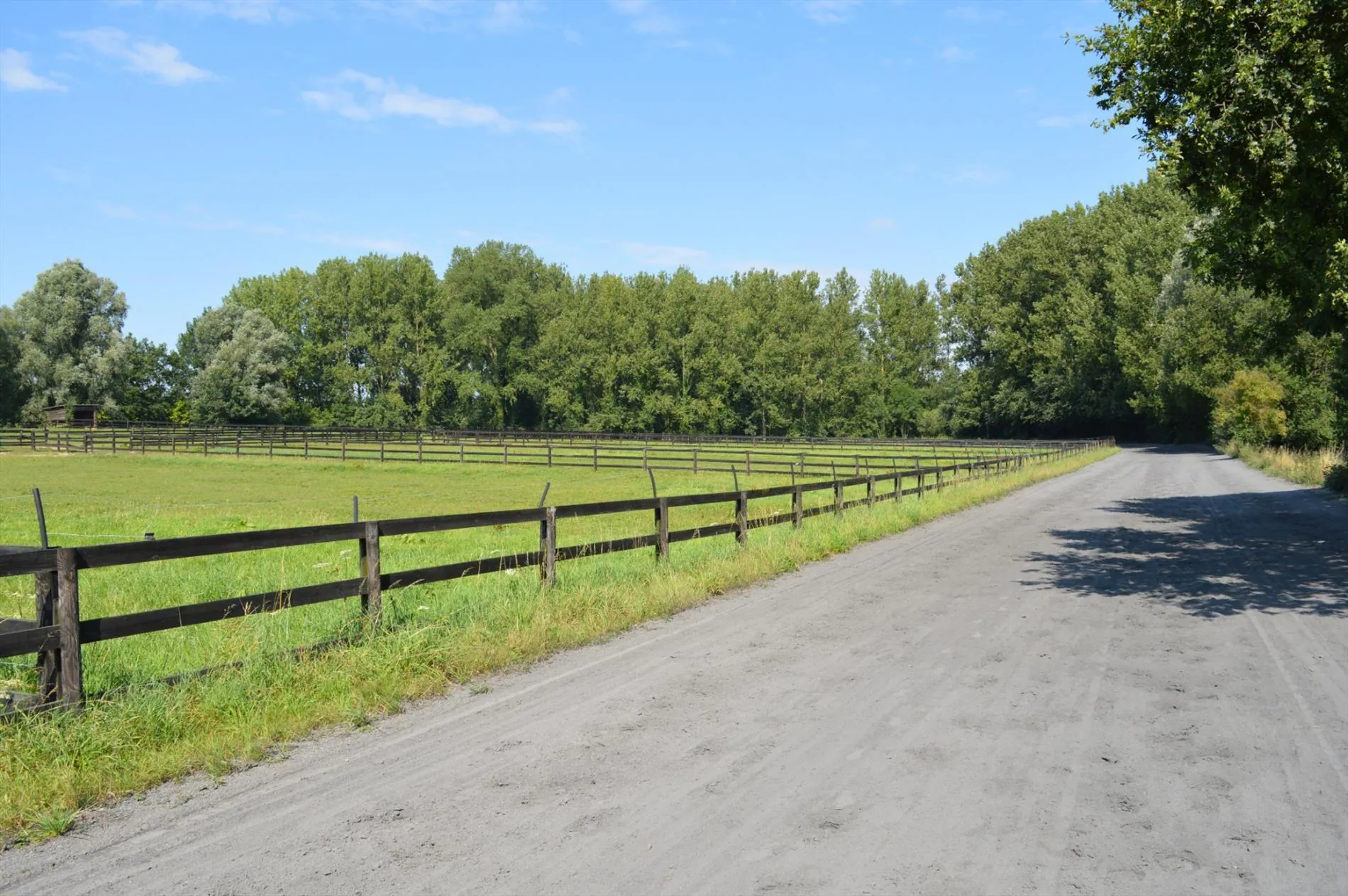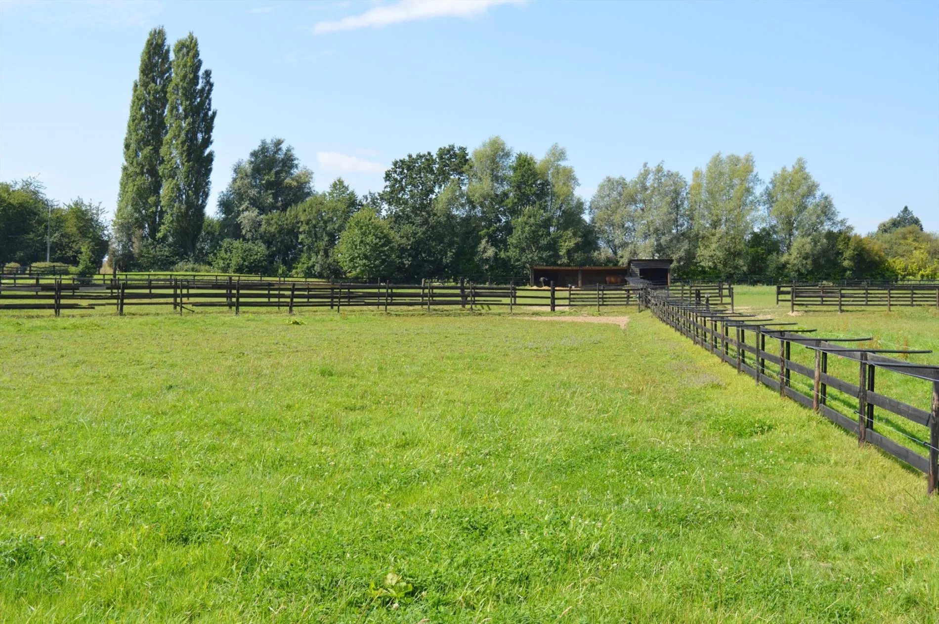 Centraal tussen Geraardsbergen, Zottegem en Oudenaarde en vlakbij de N8, bevindt zich deze idyllisch gelegen eigendom. Het domein bevindt zich langs een kleine weg in het mooie landschap en paalt aan een ruiterroute. Het geheel bestaat uit een woning en een appartement, een grote opslagloods, een stalgebouw met 40 boxen, 2 stapmolens, een professionele drafbaan en voldoende weide. De woning heeft volgende indeling: inkomhal met toilet, woonkamer met zit- en eethoek, bureau, keuken en 2 kelders. Boven zijn er 3 grote slaapkamers en een badkamer. De zolder werd recent geïsoleerd. Het tweede gedeelte van het huis bestaat uit opslag- en bergruimte op het gelijkvloers en op de verdieping is er een zelfstandig appartement met woonkamer, keuken, badkamer, apart toilet en 2 slaapkamers. De opslagloods (15m*15m) heeft een praktische hoogte en dient als stro-, hooi- en materiaalberging. Het stalgebouw (30m*40m) beschikt over 40 ruime stallen van min. 3,5m*4m, automatische drinkbakken, eetbakken en voldoende licht en lucht. Er zijn verschillende solaria en wasplaatsen en voldoende opslagplaats. Achteraan het gebouw bevindt zich de stapmolen in water, een grote stapmolen voor 8 paarden, 5 aparte weidepaddocks en de mesthoop. De professionele drafbaan heeft een breedte van min. 8m en een lengte van ca. 650m. Aan de binnenkant van de drafbaan liggen de 11 veilig omheinde weidepaddocks waar 3 schuilstallen en watervoorziening zijn. Prachtige eigendom voor elke tak van de paardensport!