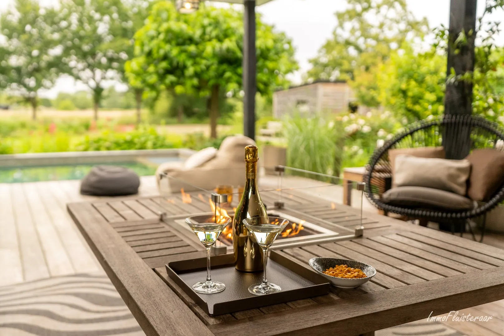 The covered terrace is a lovely place to relax at the bar or in the seating area. Ideal for enjoying the view of the beautifully maintained garden and paddocks with friends and family.