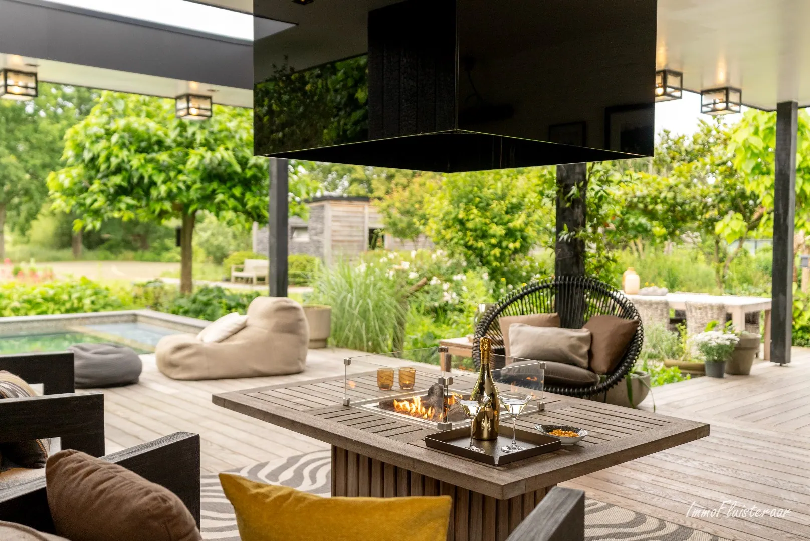 The luxurious villa is finished with high-quality materials. There are 3 bedrooms and 3 bathrooms, all meticulously cared for. The open kitchen (2020) is equipped with all comforts and connects to the living room. Both spaces offer a beautiful view of the garden and the stables. Office spaces are provided on the ground floor and on the mezzanine. In addition to the work spaces, relaxation has also been taken into account. The villa offers a wellness area with shower, sauna, steam bath, and a gas fireplace. Prefer to sit in the water? An integrated jacuzzi is provided on the outside and there is a swimming pool on the covered terrace.