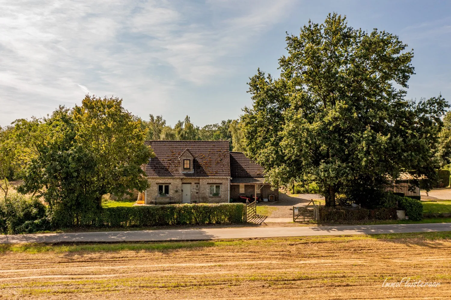 Translate to English: This neat house is located in a real country lane, however, the entrance to the E314 motorway is just 500m away. Facilities such as shops, schools, banks, etc. are also less than 2km away.