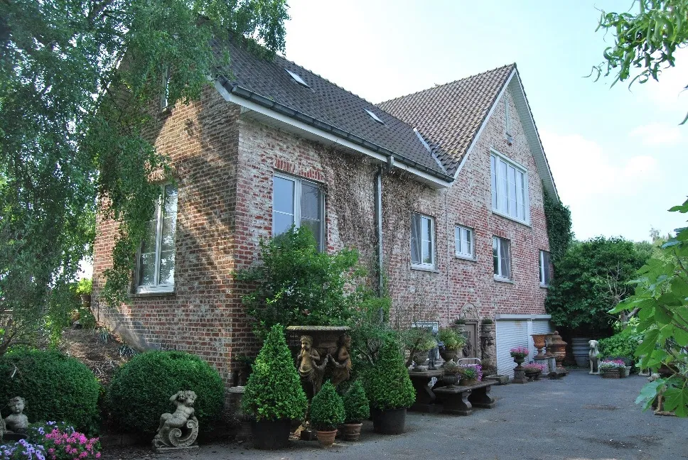 Net buiten het centrum van Deinze staat deze villa, palend aan de Leie en in de schaduw van het natuurpark de Brielmeersen en de jachthaven van Deinze. De woning staat diep op het perceel en de lange oprit zorgt samen met de aanleg van de tuin dat er geen inkijk mogelijk is. In 1964 werd de villa gebouwd naar een ontwerp van de gekende architect Willy Saverys. De renovatie dateert van eind de jaren '90 en van 2005 (dubbele beglazing, spouwmuurisolatie, vernieuwd dak enz). De indeling van het gelijkvloers is als volgt: ruime inkomhal met trap, vestiairekast en apart toilet, zeer ruime leefkamer met open haard en een prachtig uitzicht door de grote raampartijen, landelijke keuken en toegang naar de kelder, 2 slaapkamers met gedeelde doucheruimte en een derde slaapkamer met badkamer. Op de verdieping is er een overloop, grote slaapkamer, praktische zolderruimte en een polyvalente ruimte die onderverdeeld is in 3 plaatsen, gemakkelijk om te vormen naar extra slaapkamers. Enkele opfrissingen aan het interieur zijn noodzakelijk. Vooraan de woning is er een charmant terras, deels overdekt en de ideale plaats om te genieten van de mooie Engelse tuin, de weide en het uitzicht! In de tuin staat een mooie authentieke orangerie en een karaktervol houten tuinhuis. De weide is volledig omheind en er is een paddock met grote loopstallen. Verder op de weide staat een stalgebouw met 4 boxen. De mogelijkheid bestaat om een kleinere conciërgewoning vooraan op het terrein bij aan te kopen