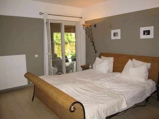 Er is het vergund bijgebouw van meer dan 100 m² die een ingerichte keuken, badkamer, bureauplaats en slaapplaats inhoudt.