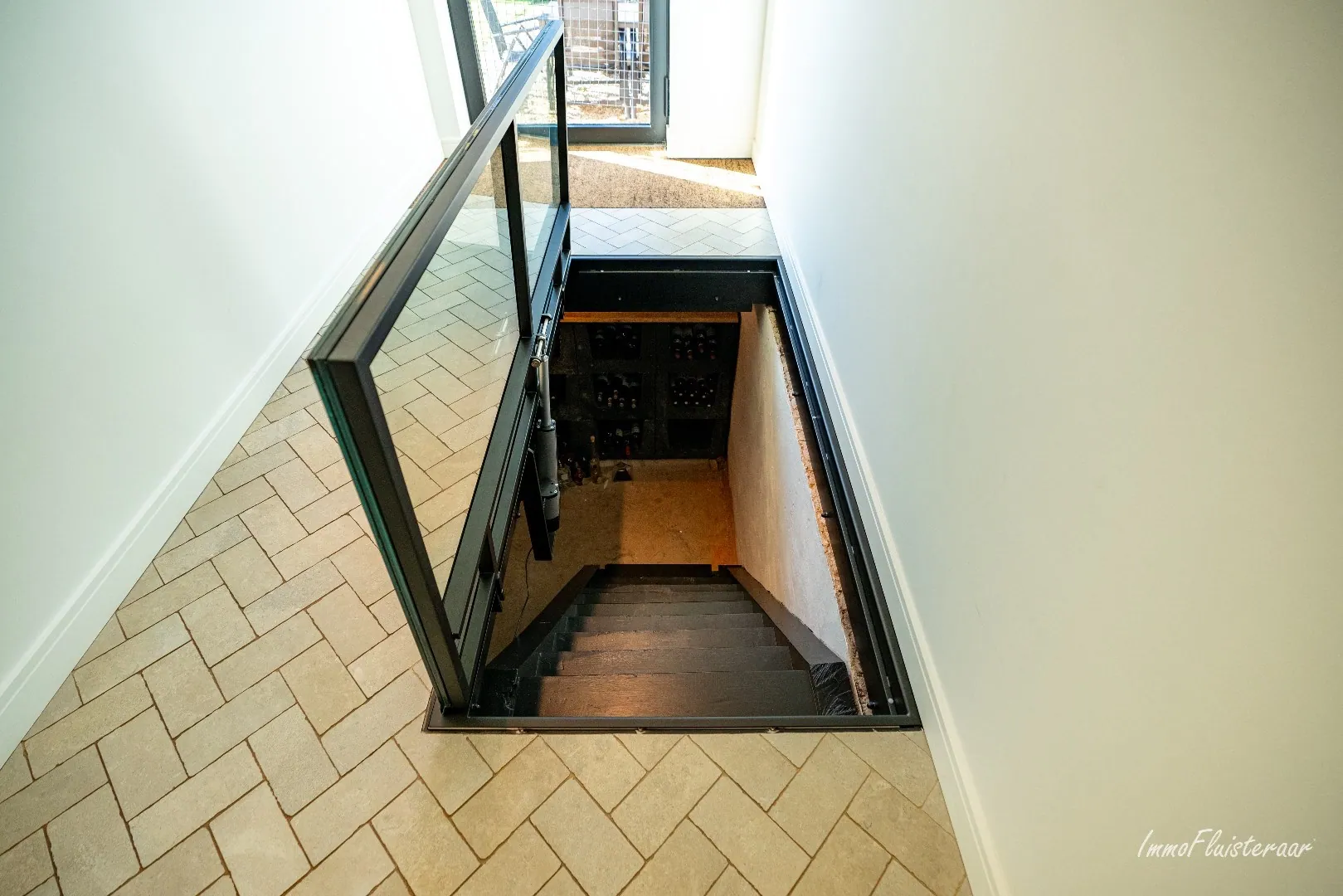 - Une cave à vin avec une plaque de verre dans le sol pour une vue unique