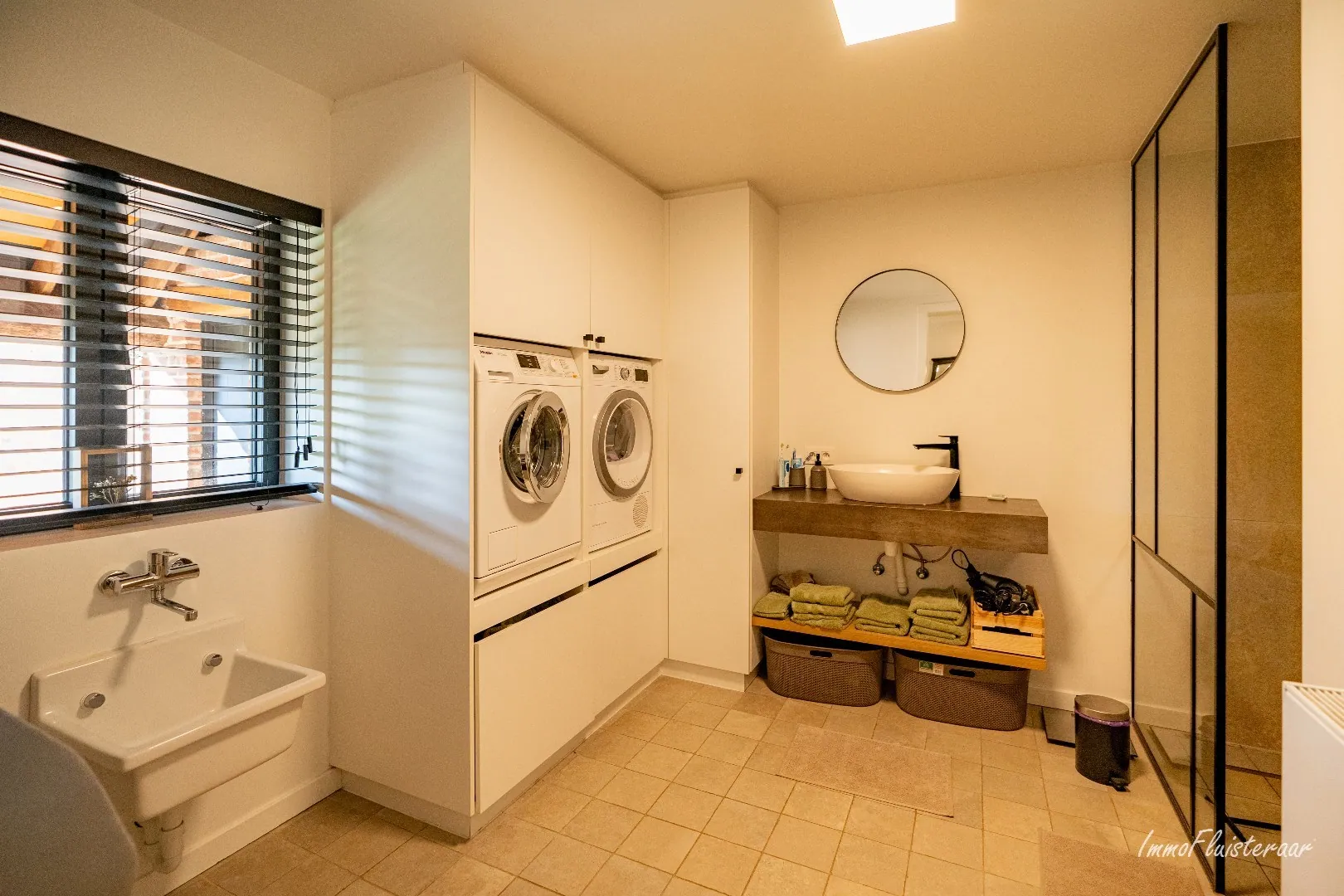 - Une buanderie avec douche et lavabo