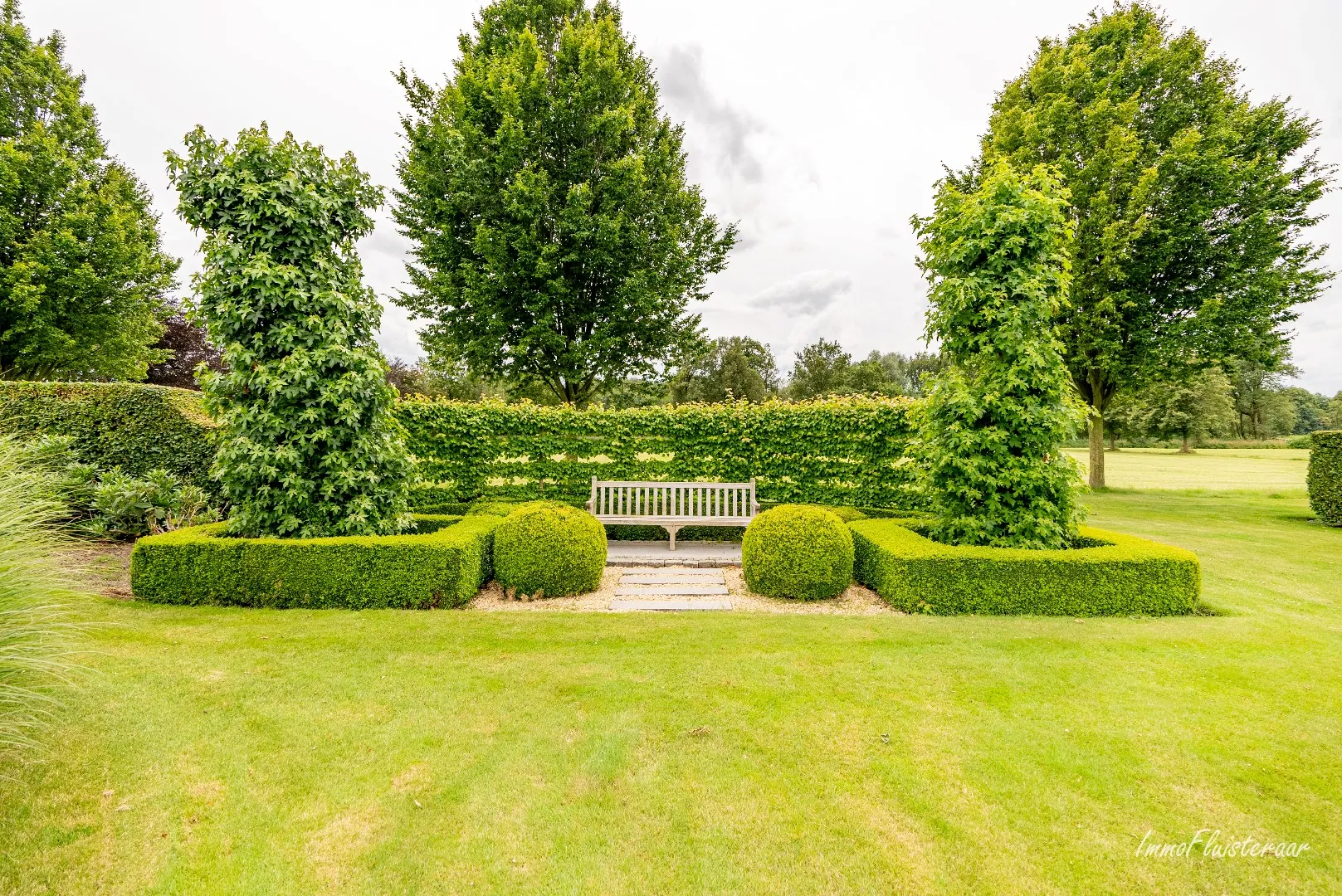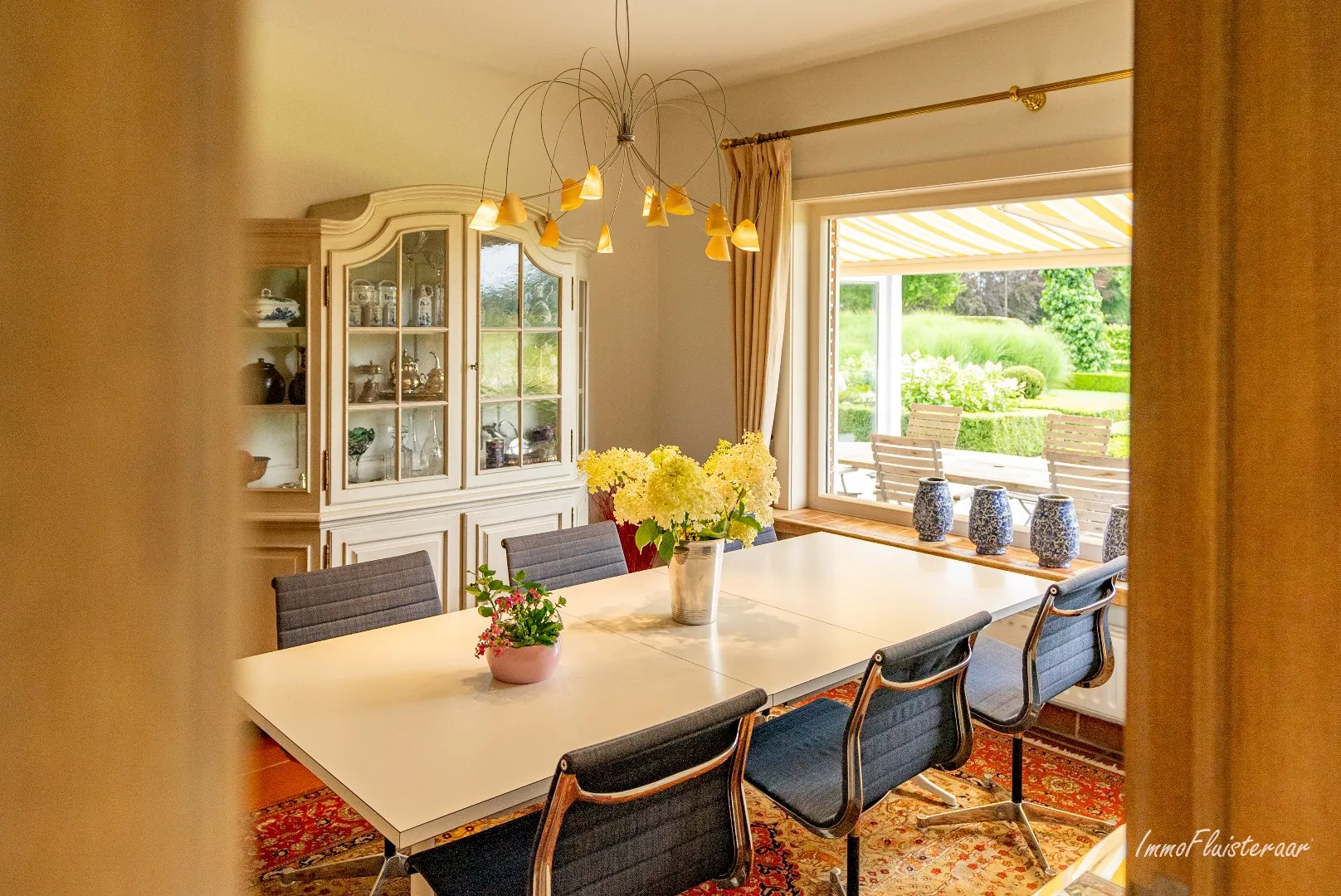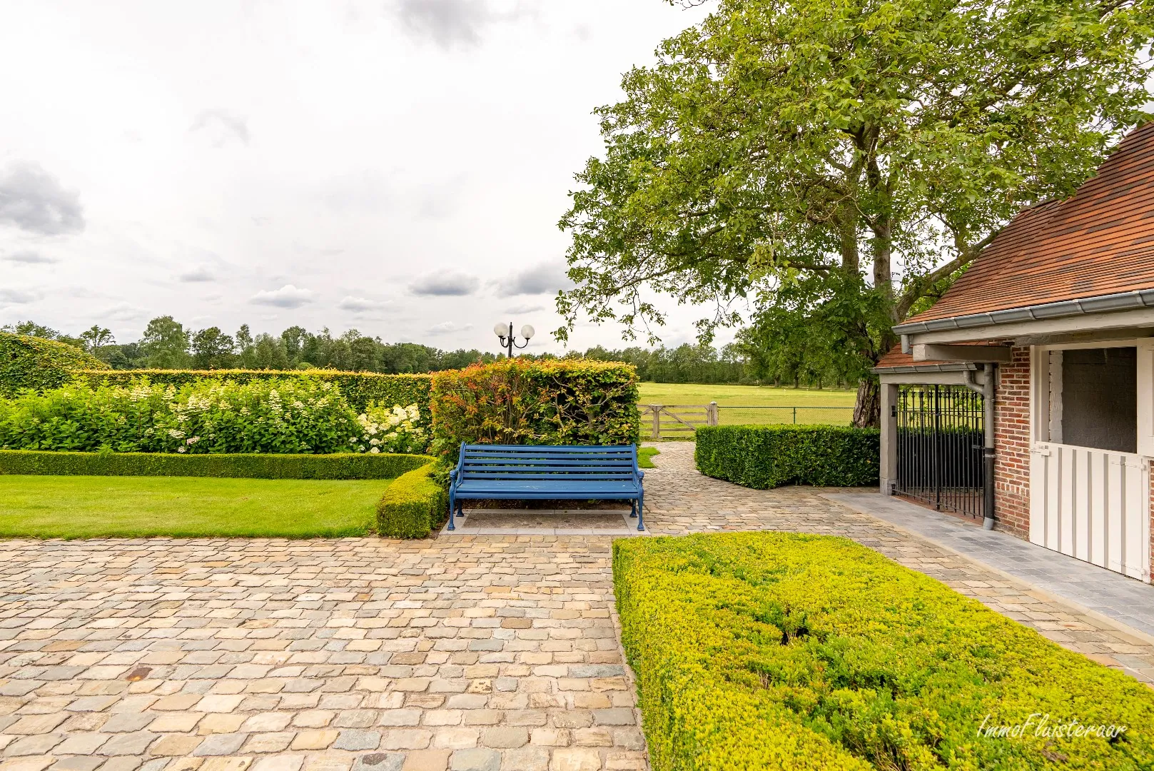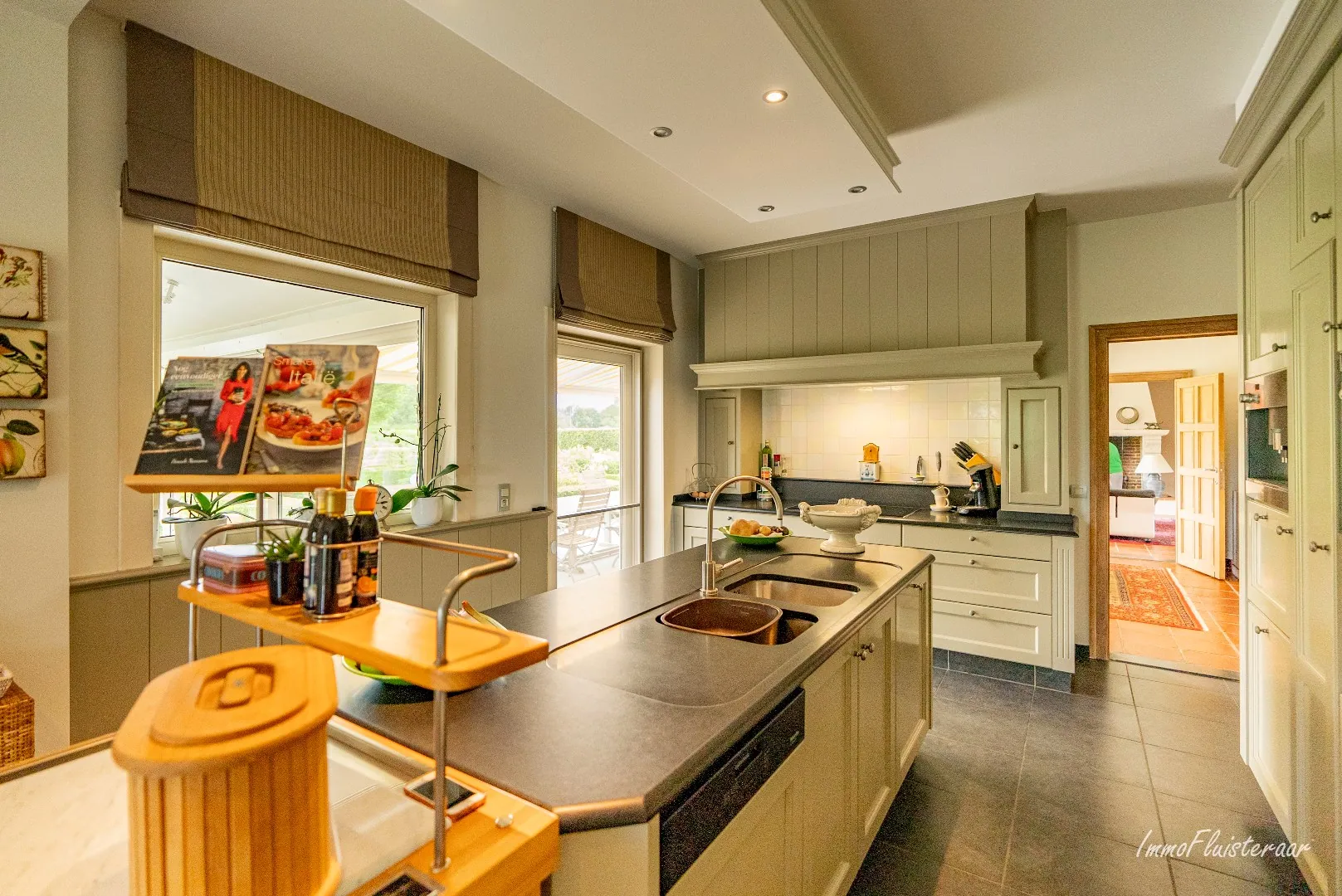 La maison de campagne de luxe offre une vue magnifique sur le très beau jardin. Le rez-de-chaussée se compose d'une cuisine intemporelle, d'un grand salon avec cheminée, d'un coin salon séparé et d'un espace bureau avec vue sur la cour intérieure et le bâtiment d'écurie. Un grand débarras pratique avec une douche séparée et des placards intégrés offre beaucoup d'espace de stockage. Il y a également une cave. La cuisine donne accès à la terrasse couverte avec cuisine extérieure, où vous pourrez profiter du soleil du matin et d'une vue magnifique sur le domaine.