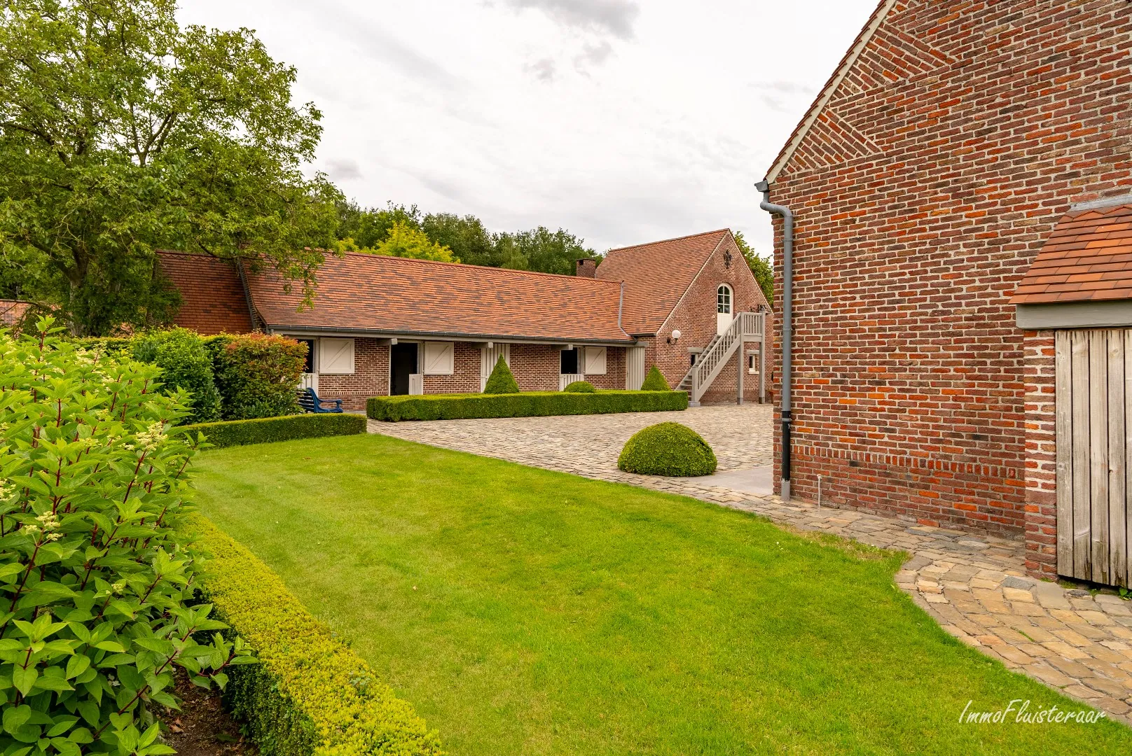 Le domaine est idéal pour l'élevage de chevaux ou d'autres animaux, avec une superficie de pas moins de 9 hectares. Un bâtiment d'écurie est prévu, entièrement dans le même style que la maison de campagne. Il y a 4 grands boxes (3m x 4m) et amplement d'espace de stockage. À côté du bâtiment d'écurie se trouve un garage double avec des portes automatiques. Au-dessus du garage se trouve un espace polyvalent confortable, facilement accessible par un escalier fixe.
