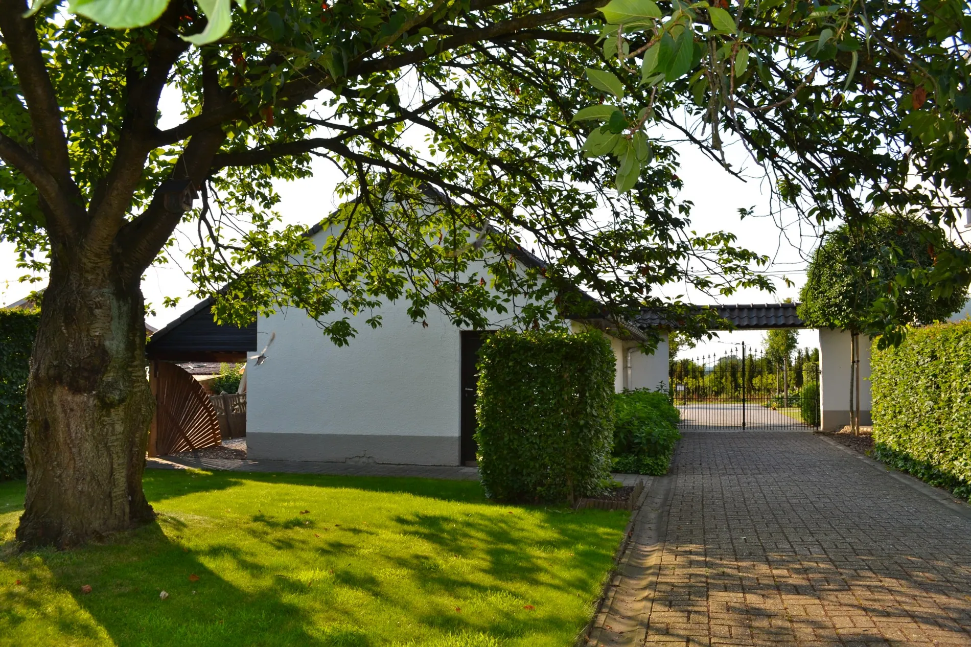 Aansluitend aan de woning bevindt zich een casco ruimte die dienst kan doen voor een zelfstandig beroep en een garage geschikt voor twee wagens met een afzonderlijke berging.