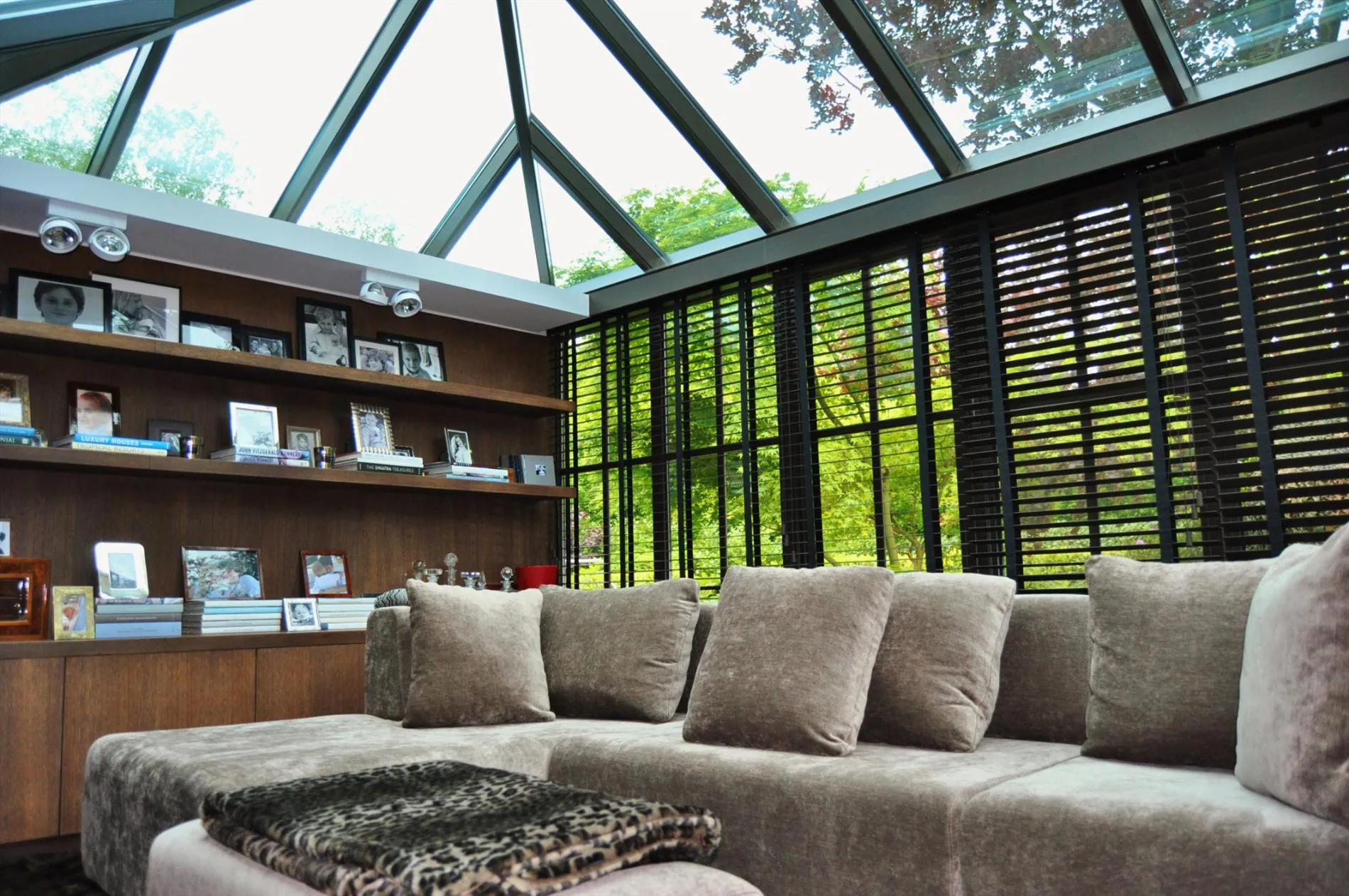 Op de gelijksvloer een ruime inkomhall met gastentoilet, een mooie open leefkeuken, aansluitend een eetkamer met een prachtig zicht naar buiten, een gezellige woonkamer en een TV-salon dat ondergebracht werd in de orangerie. Vanuit de keuken heeft U rechtstreekse toegang naar het overdekte terras, een uitgelezen plaats om gezellige avonden door te brengen met familie of vrienden!