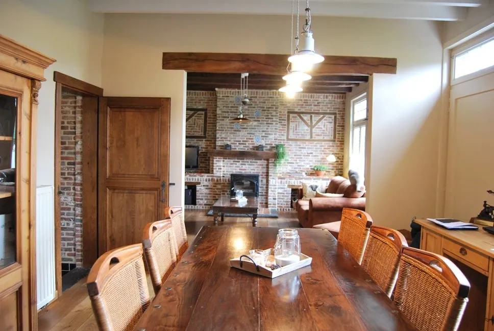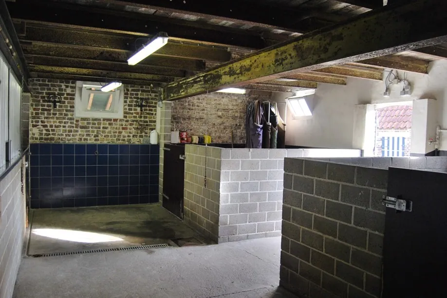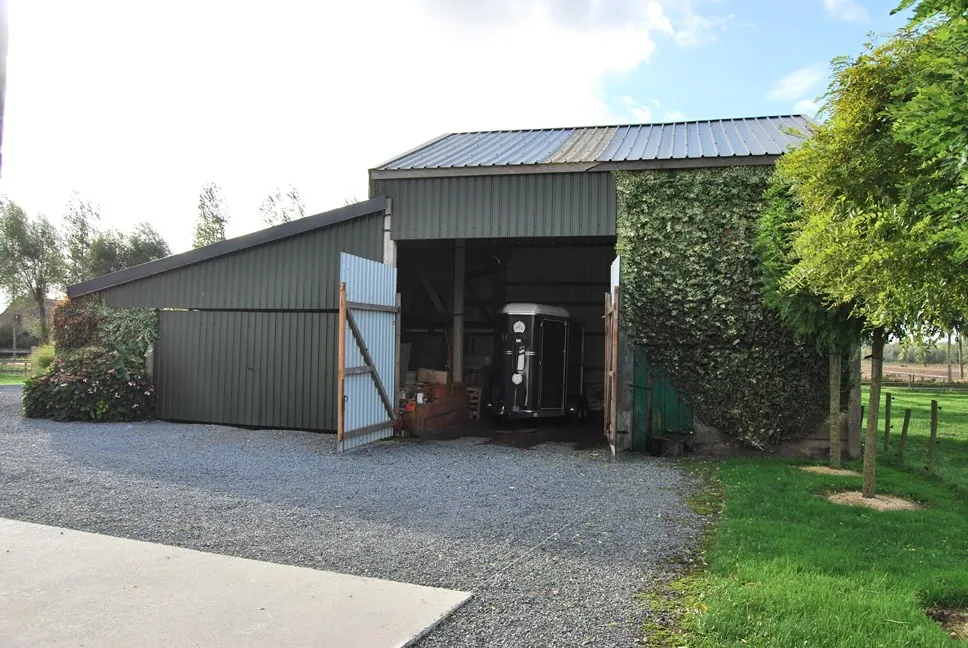 Op een boogscheut van de E34 Antwerpen - Knokke en middenin het groen, staat deze woning met stalgebouwen en schuur. De oprit ligt centraal op het perceel en is langs beide zijden met hout omheind. De aanleg en onderhoud van het perceel zijn perfect verzorgd. Het woonhuis werd in 2000 volledig verbouwd en heeft een stijlvol, landelijk interieur. Op het gelijkvloers bevindt zich de lichte en ruiime leefkeuken met toegang naar de kelder en de voute, een eetplaats en woonkamer met houtkachel en authentieke haard als centrale elementen. De voutekamer werd ingericht als een gezellige, praktische badkamer. Op de verdieping zijn er vandaag 2 grote slaapkamers, opengewerkt tot in de nok en waarvan er gemakkelijk 3 kunnen gemaakt worden. Uitbreiding naar 1000m³ kan! In de tuin achter het huis staan 2 kleinere stalgebouwen die dienst doen als tuin- en technische berging. De aparte ponystal geeft uit op de weide. Het grote stalgebouw bestaat uit 4 ruime boxen met eet-en drinkbakken, een mooie zadelkamer en aparte garage. De hooizolder erboven wordt nog steeds gebruikt voor de stockage van hooi en stro. Een gesloten schuur van ca. 135m² kan gebruikt worden als stockage, garage, ... Naast de goede staat van onderhoud, zijn het ook de gezellige hoekjes en terrassen die deze eigendom compleet maken: een prachtige zomerkeuken bevindt zich in een uitbouw van de stallen, met een fantastisch uitzicht op de weide en achterliggende natuur! Het geheel heeft een sublieme afwerking en kan onmiddellijk in gebruik genomen worden. Met de oppervlakte van het perceel en de stallingen kan deze eigendom ook passen voor verschillende doeleinden!