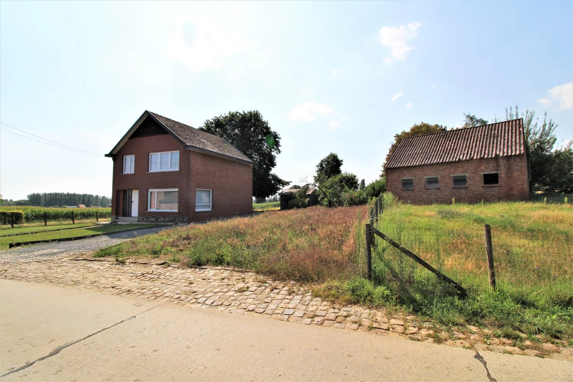 Optie - Te renoveren woning met aanhorigheden, bijgebouwen, loods en een weiland op ca. 85a te Waanrode (Vlaams-Brabant)