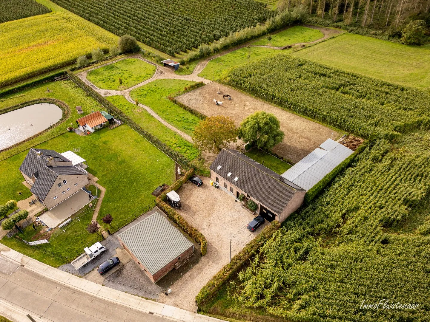 Pour les amateurs de chevaux, il y a une piste extérieure (20m x 60m), six écuries et une grange. La propriété est aménagée avec un système de piste, permettant aux chevaux de profiter d'un environnement varié qui les encourage à rester en mouvement, avec plusieurs petits pâturages entre les pistes. L'environnement rural offre aux cavaliers diverses possibilités de balades, avec un vaste réseau de routes et de sentiers idéaux pour explorer la nature.