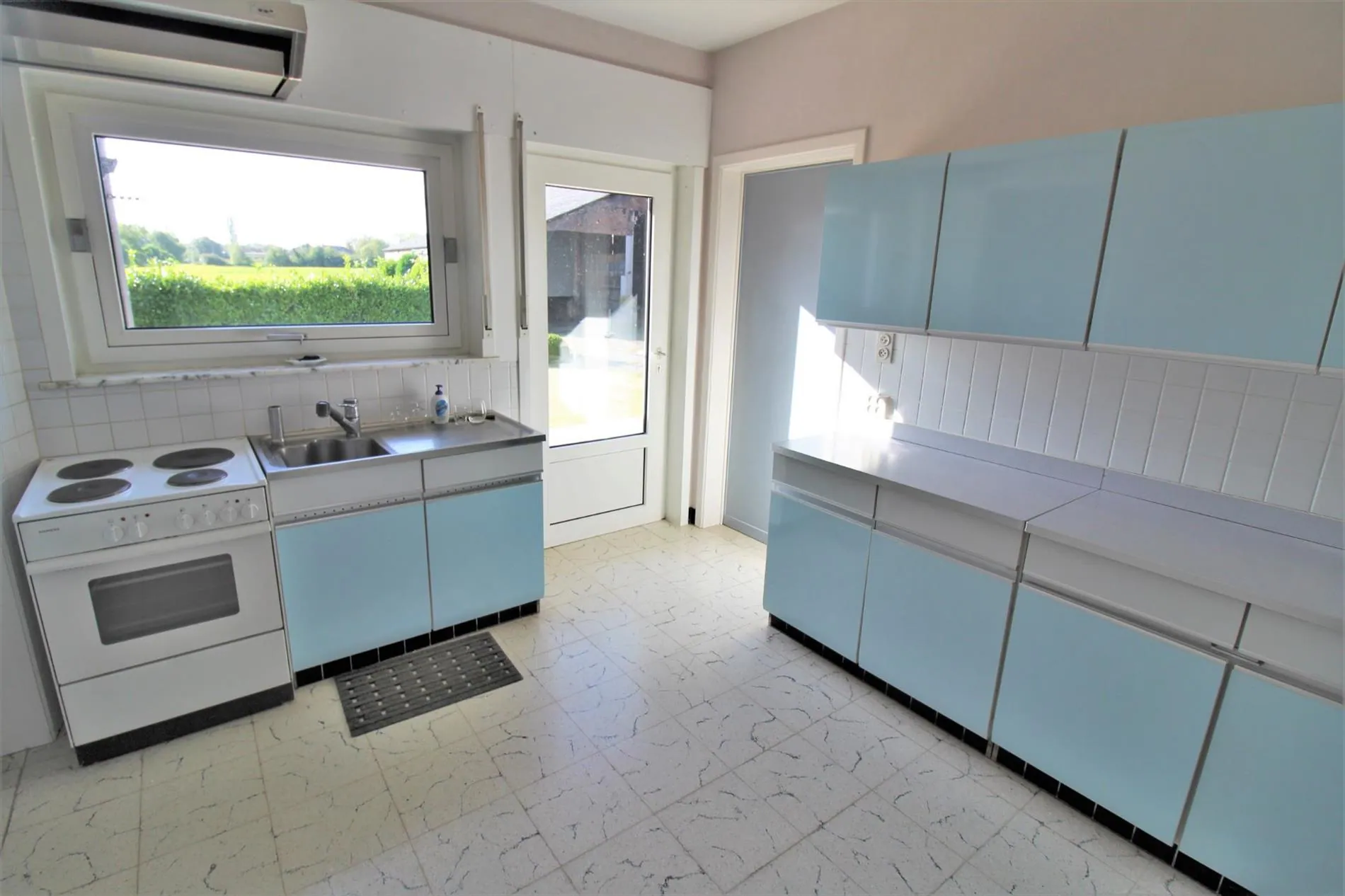 Het gelijkvloers bestaat uit een inkom- en trappenhal, een grote leefruimte, een zonnige keuken, een badkamer met enkele lavabo en een ligbad, een apart toilet en een garage. De 1e verdieping herbergt 3 slaapkamers en een berging. De mogelijkheid is voorzien om deze berging om te vormen tot een badkamer. Ten slotte omvat de woning een kleine kelder en een zolder.