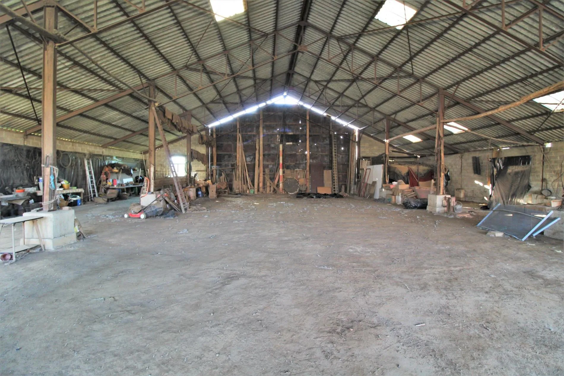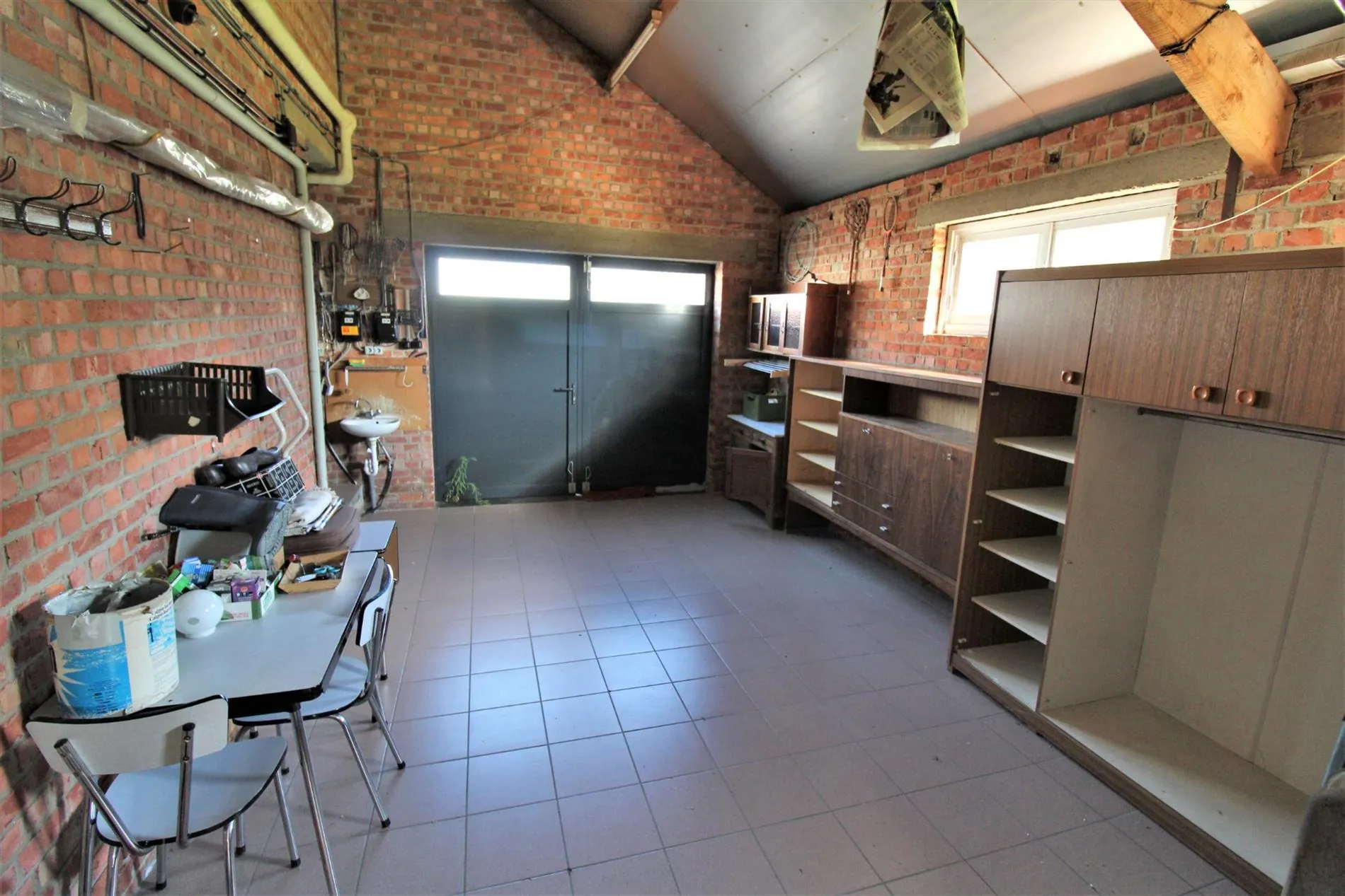 De ruime stalen loods ligt achter de woning en bedraagt ca. 22,5m X 26m. De weilanden liggen achter woning en de loods en grenzen aan de gebouwen. Op de weilanden kan men genieten van een prachtig zicht op de omgeving.
