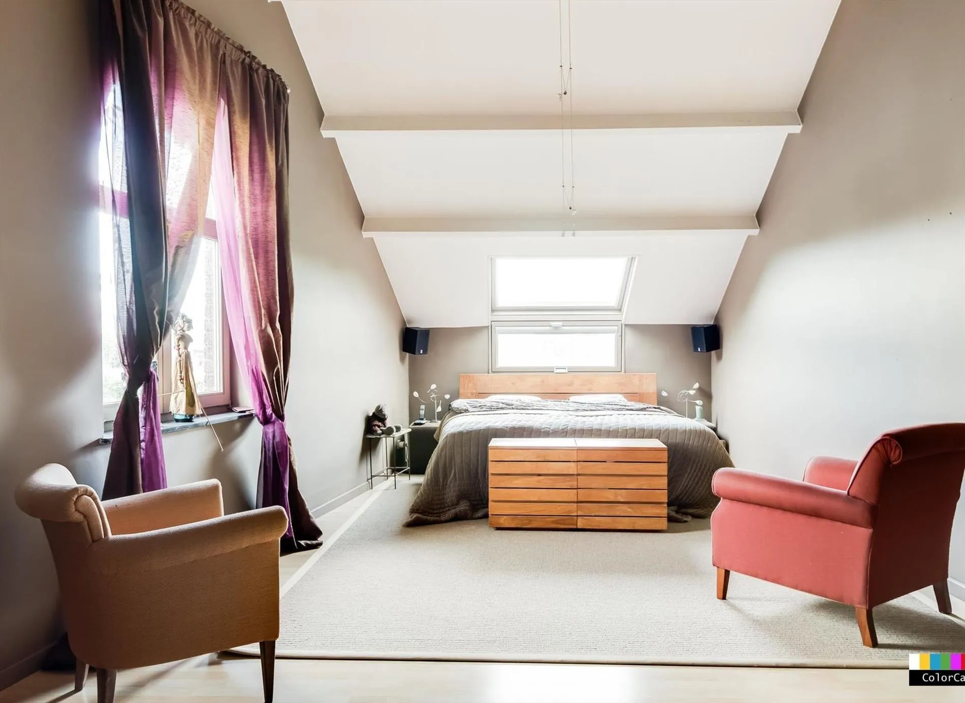 De hoevewoning (ca. 280m²) is volledig gerenoveerd tussen 1990 en 1993 met aandacht voor het behoud van de karakteristieke en landelijke elementen. De hoeve bestaat op het gelijkvloers uit een inkom- en trappenhal met vestiaire, een gastentoilet, een ruime leefruimte met eetplaats en zithoek, een volledig ingerichte en zonnige keuken, een bijkeuken, berging of wasplaats en 2 burelen met een aparte ingang. Zowel vanuit de keuken als de leefruimte kunnen het terras en de grote tuin achter de hoeve bereikt worden. De 1e verdieping herbergt een nachthal met overloop en ingemaakte kasten, een apart toilet, 3 slaapkamers, 1 master bedroom met dressing en een ruime badkamer met dubbele lavabo, ligbad en douche. Ten slotte beschikt de woning over een zolder.