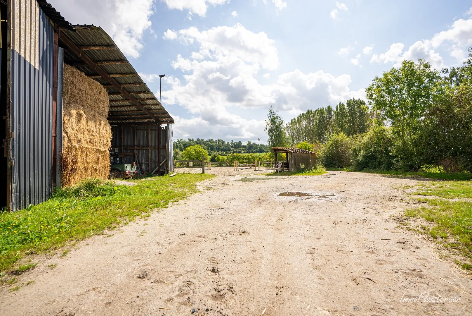 L' installation équestre est accessible à la fois par le grand garage avec portail automatique et par le chemin de campagne derrière la propriété. L' installation équestre inclut: