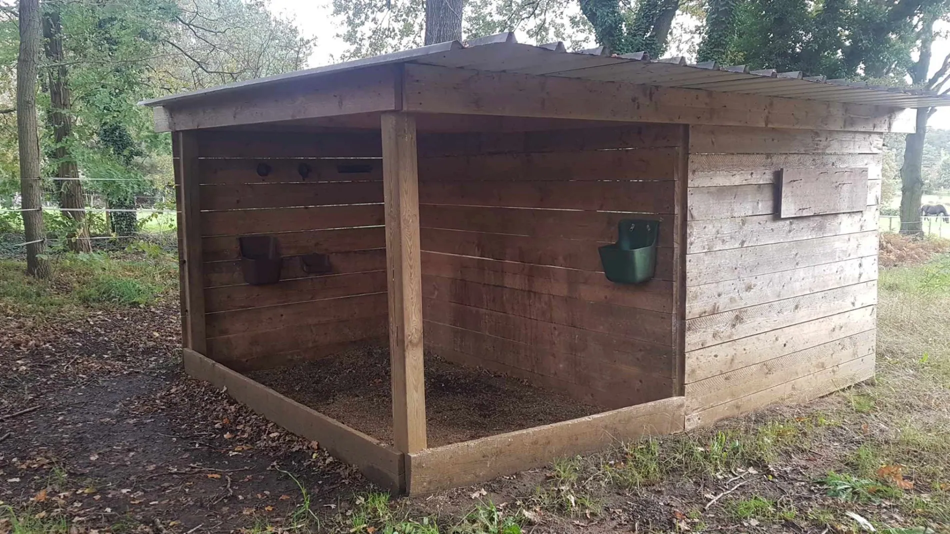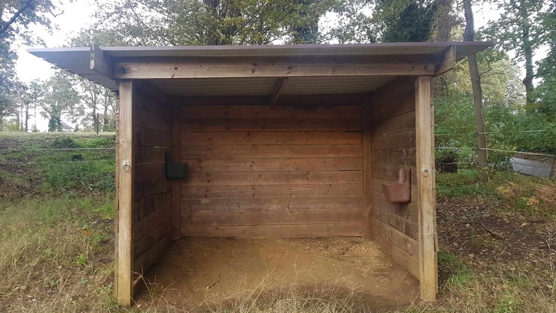 Le pré est entièrement clôturé et équipé d'un abri.